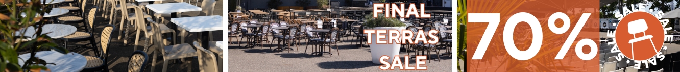 Een goed terras is hét visitekaartje van je zaak. Comfortabele stoelen, stevige tafels en een gezellige uitstraling zorgen ervoor dat gasten langer blijven zitten én sneller terugkomen. Met de Final Terras Sale profiteer je van: