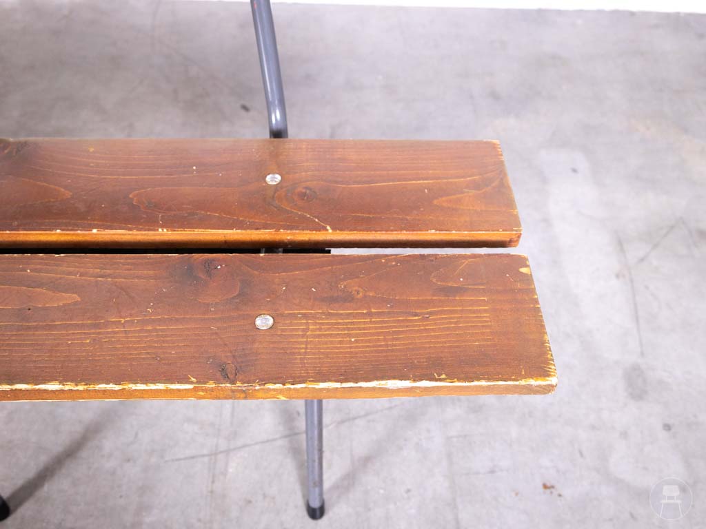 De rugleuning verhoogt het zitcomfort aanzienlijk, waardoor gasten langer blijven zitten – en dus langer blijven bestellen. Ondanks zijn formaat is het bankje eenvoudig inklapbaar, wat opslag en transport bijzonder makkelijk maakt. Met dit tweedehands horeca bankje voeg je niet alleen zitplaatsen toe, maar ook karakter en kwaliteit aan je zaak.