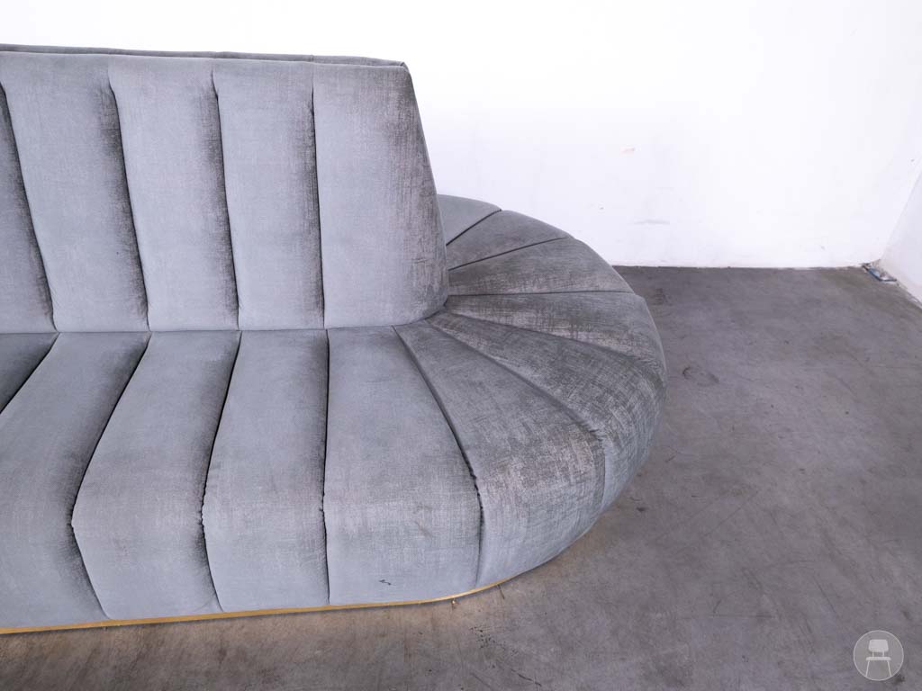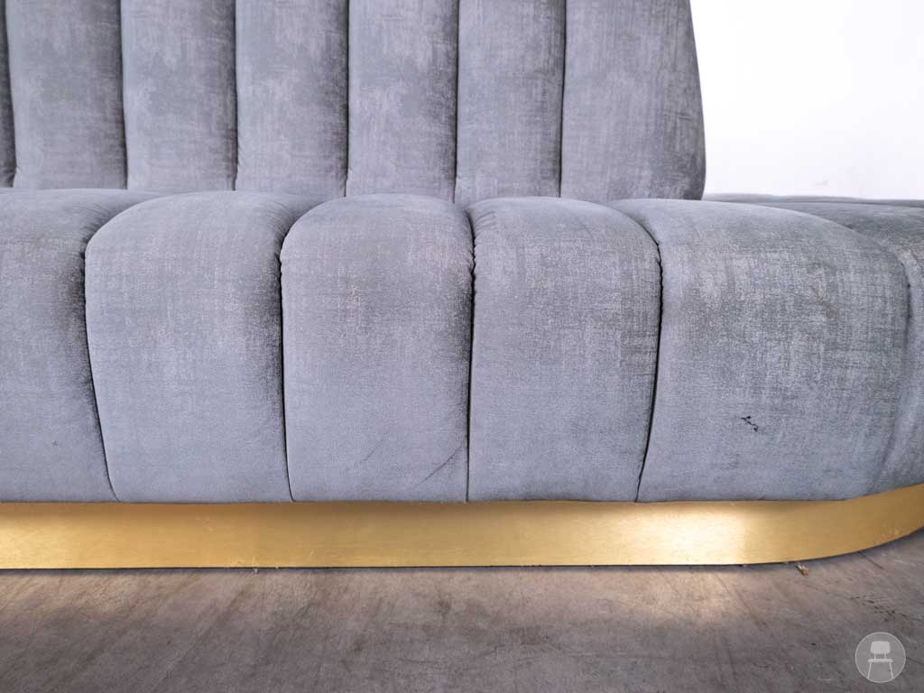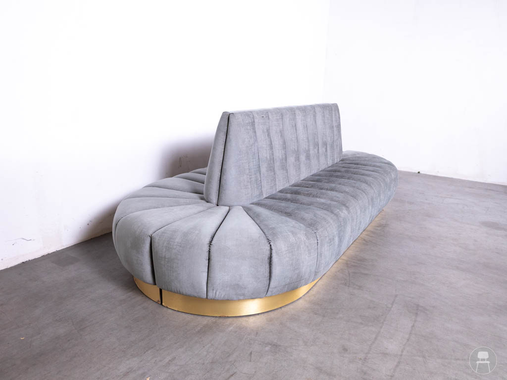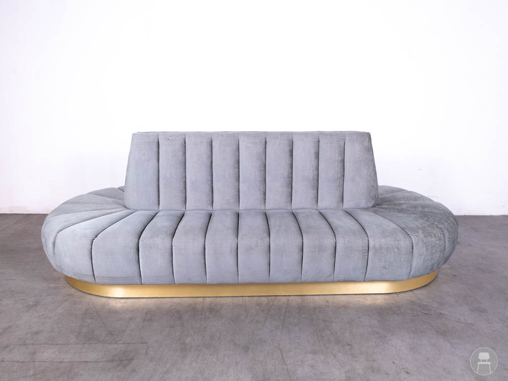Ondanks een kleine beschadiging op de rugleuning (zichtbaar op de foto), blijft deze bank een fantastisch meubelstuk dat gegarandeerd indruk maakt. Perfect voor lobby’s, luxe restaurants en wachtruimtes.
