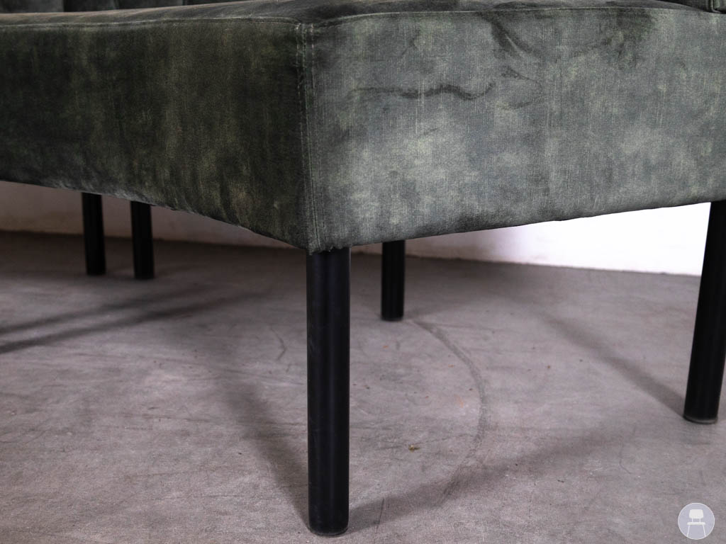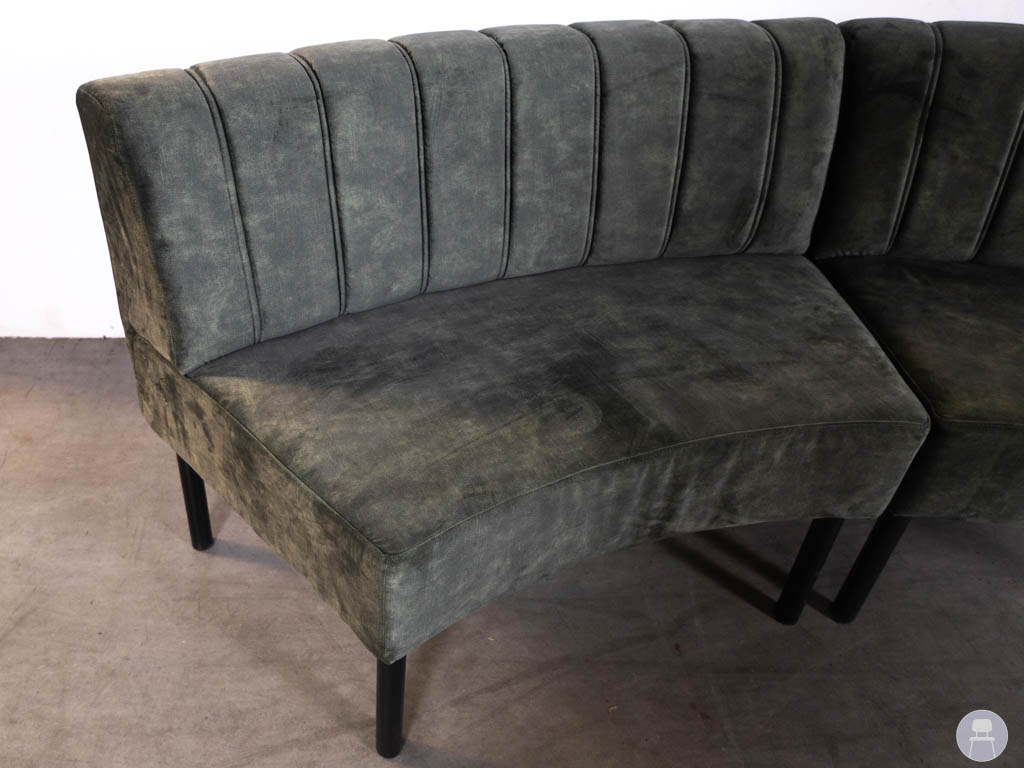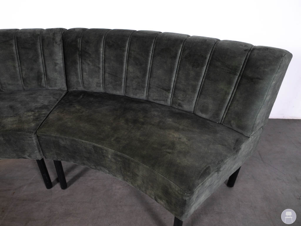 Horecabank Klaasje velvet groen 200cm Satelliet is een luxe en comfortabele horecabank met een moderne uitstraling. Deze horecabank is uitgevoerd in een velvet microvezel stof in een groene kleur, wat zorgt voor een zachte en warme uitstraling. Zowel de voor- als achterkant zijn volledig bekleed, waardoor de bank vrij in de ruimte geplaatst kan worden. De verticale stiknaden in de rugleuning geven de bank een stijlvol en eigentijds karakter. Het metalen onderstel in zwart zorgt voor een stevige basis en een mooi contrast met de bekleding.