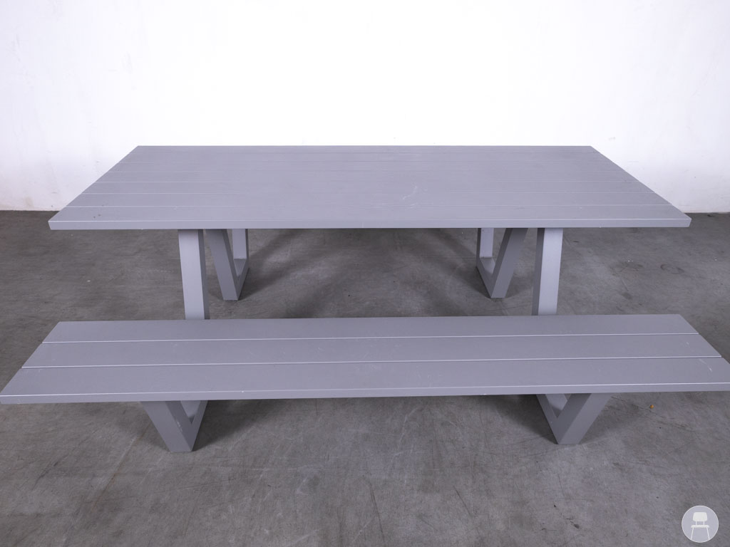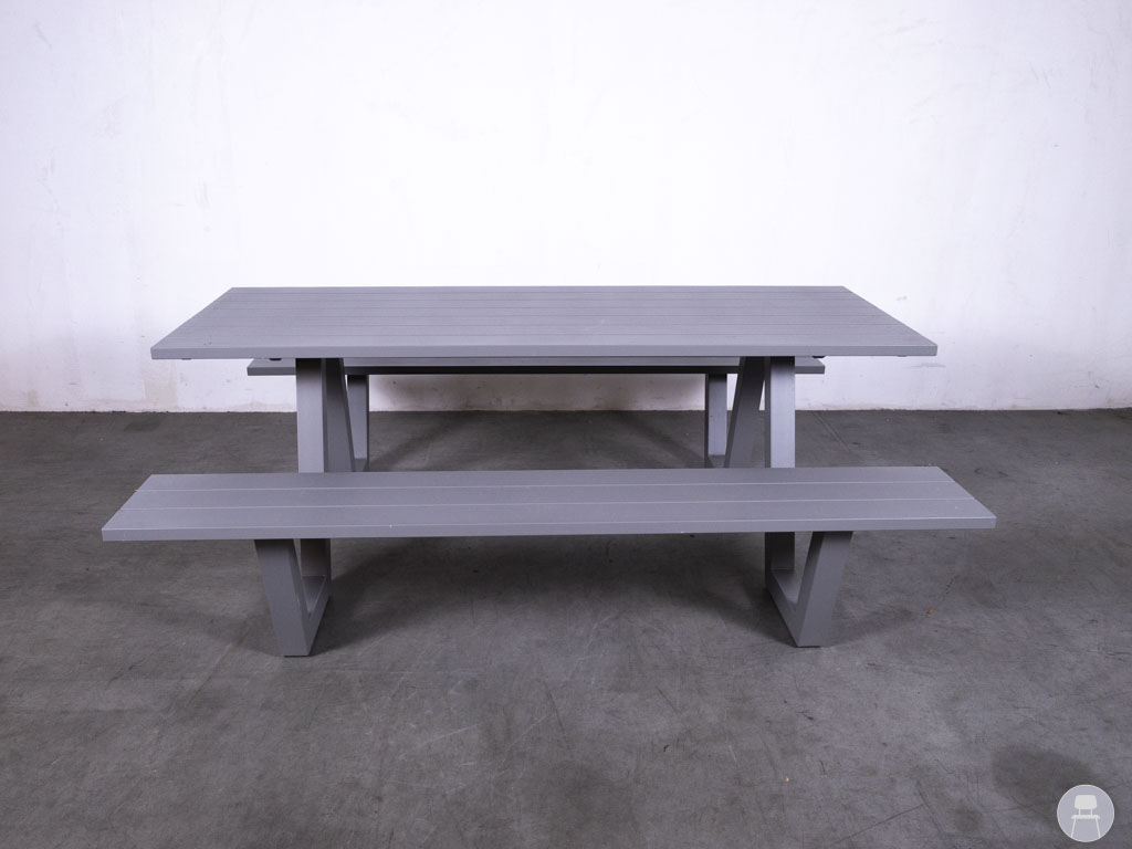 Picknickbank Salamanca T Manon grijs Satelliet 200cm in de kleur grijs van het merk Satelliet is dé perfecte toevoeging aan elk horecaterras. Dankzij het robuuste ontwerp en het onderhoudsvriendelijke kunststof is deze bank uitermate geschikt voor intensief gebruik in de horeca. De industriële grijze kleur van de picknickbank geeft een moderne uitstraling die past bij zowel strakke stadsomgevingen als sfeervolle buitenlocaties.