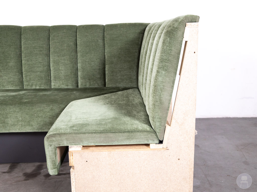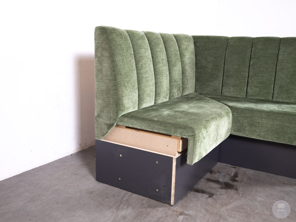De Wandbank Corner Corry groen velvet 130×124 cm is een stijlvolle en comfortabele hoekbank die perfect aansluit bij moderne horeca-interieurs. Dankzij de luxe groene velvet bekleding en de verticale stiknaden in de rugleuning straalt deze wandbank warmte, elegantie en klasse uit. De zachte velvet stof geeft een rijke uitstraling en zorgt tegelijkertijd voor een comfortabele zit, ideaal voor restaurants, cafés, hotels en andere hospitalityconcepten waar sfeer en comfort samenkomen.