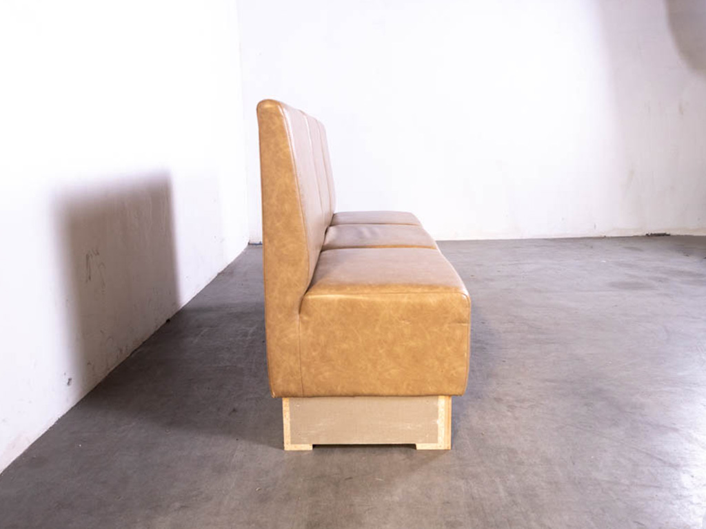 Wandbank Gini bruin 186cm is een praktische en comfortabele oplossing voor horecazaken die op zoek zijn naar efficiënte zitopstellingen met een warme uitstraling. Deze bank bestaat uit drie losse delen die eenvoudig aan elkaar te koppelen zijn, wat flexibiliteit biedt in de opstelling. Het houten frame zorgt voor een stevige basis, terwijl de bekleding in bruin skai leer een onderhoudsvriendelijk oppervlak biedt dat goed past in diverse interieurstijlen, van klassiek tot modern. Let op: aan de achterzijde zijn duidelijke gebruikssporen en beschadigingen zichtbaar (zie foto), wat bij plaatsing tegen een muur nauwelijks opvalt maar wel vermeldenswaardig is.