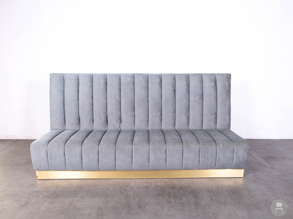 Wandbank Judith zeegroen PMP 270cm is een stijlvolle en comfortabele toevoeging aan elk horeca interieur dat luxe wil uitstralen. Met een lengte van 270 cm biedt deze wandbank voldoende zitruimte voor meerdere gasten, zonder in te leveren op uitstraling of comfort. De velvet stoffering in een rijke zeegroene kleur geeft direct een warme en uitnodigende sfeer aan de ruimte, terwijl de verticale stiknaden zorgen voor een moderne, verfijnde look. De gouden afwerking aan de onderzijde maakt het geheel helemaal af en geeft een extra vleugje elegantie aan je inrichting.