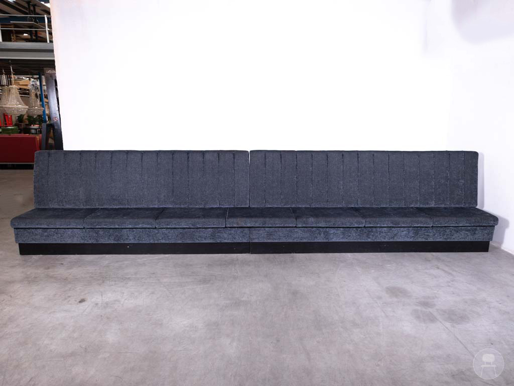 Wandbank Polly velvet blauw 580cm is de langere uitvoering van de populaire Polly-bank. Deze royale wandbank bestaat uit twee gekoppelde delen die samen een totale lengte van 580 cm vormen. Net als de kortere variant is de bank bekleed met een rijke velvet stof in diepblauw, wat zorgt voor een elegante, warme uitstraling. De verticale stiknaden in de rugleuning geven de bank een strakke, tijdloze look, terwijl de comfortabele zitkussens bijdragen aan een luxueuze zitervaring.