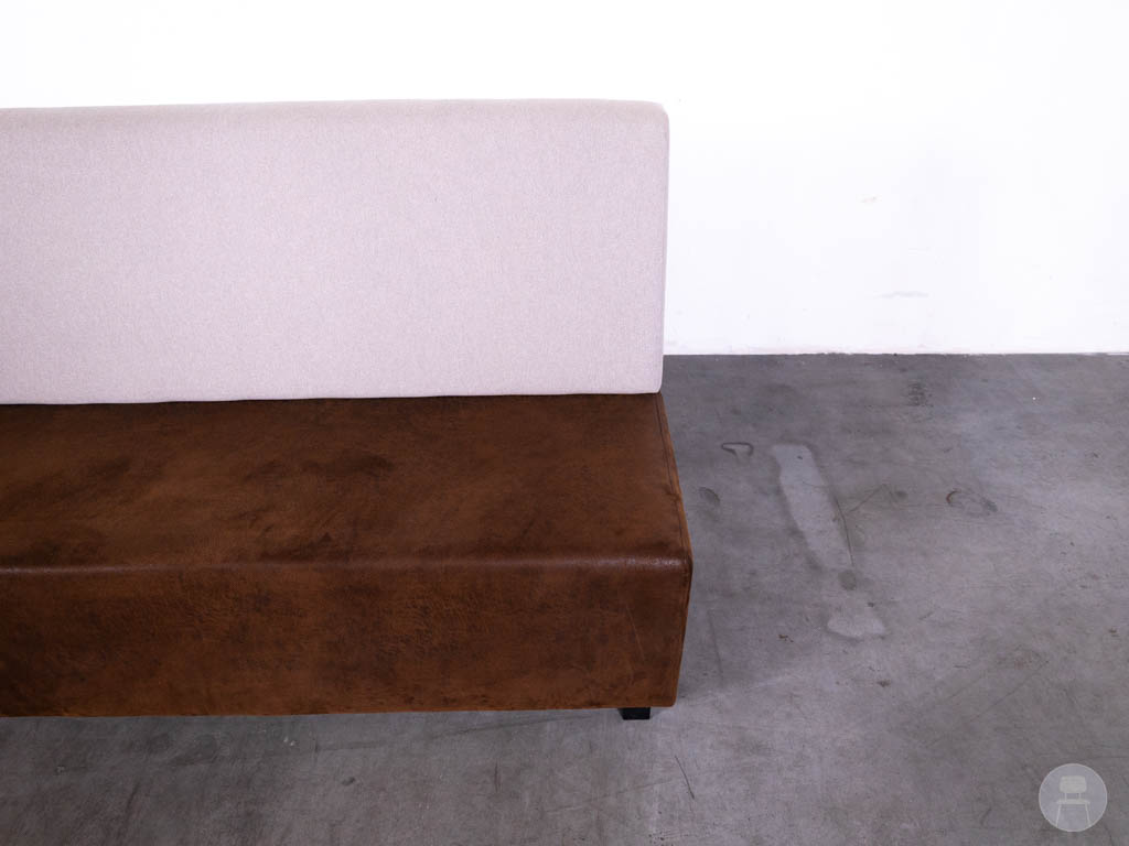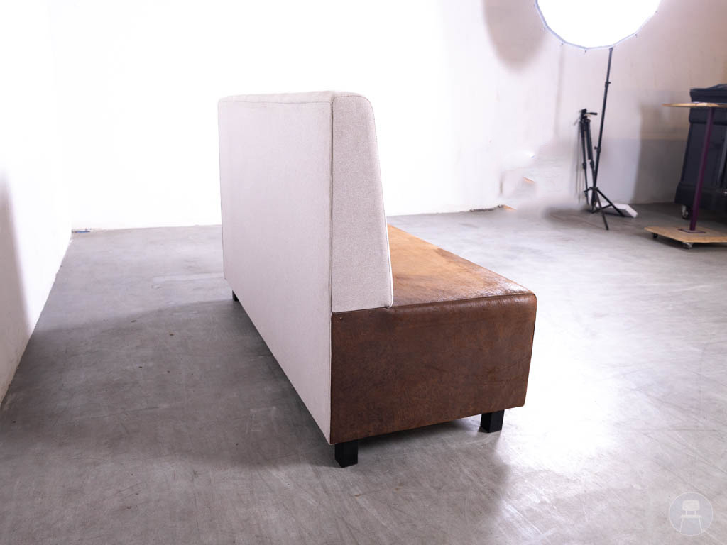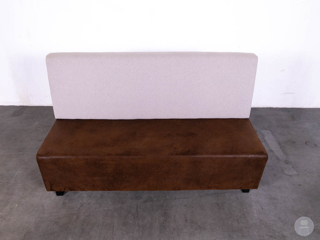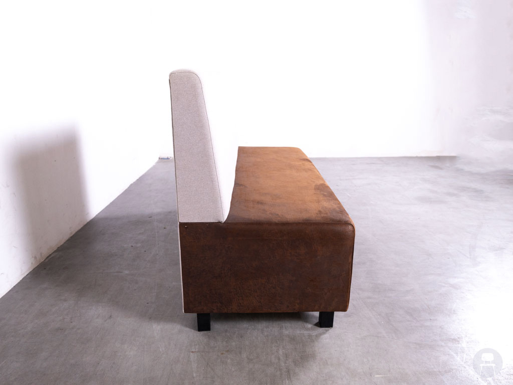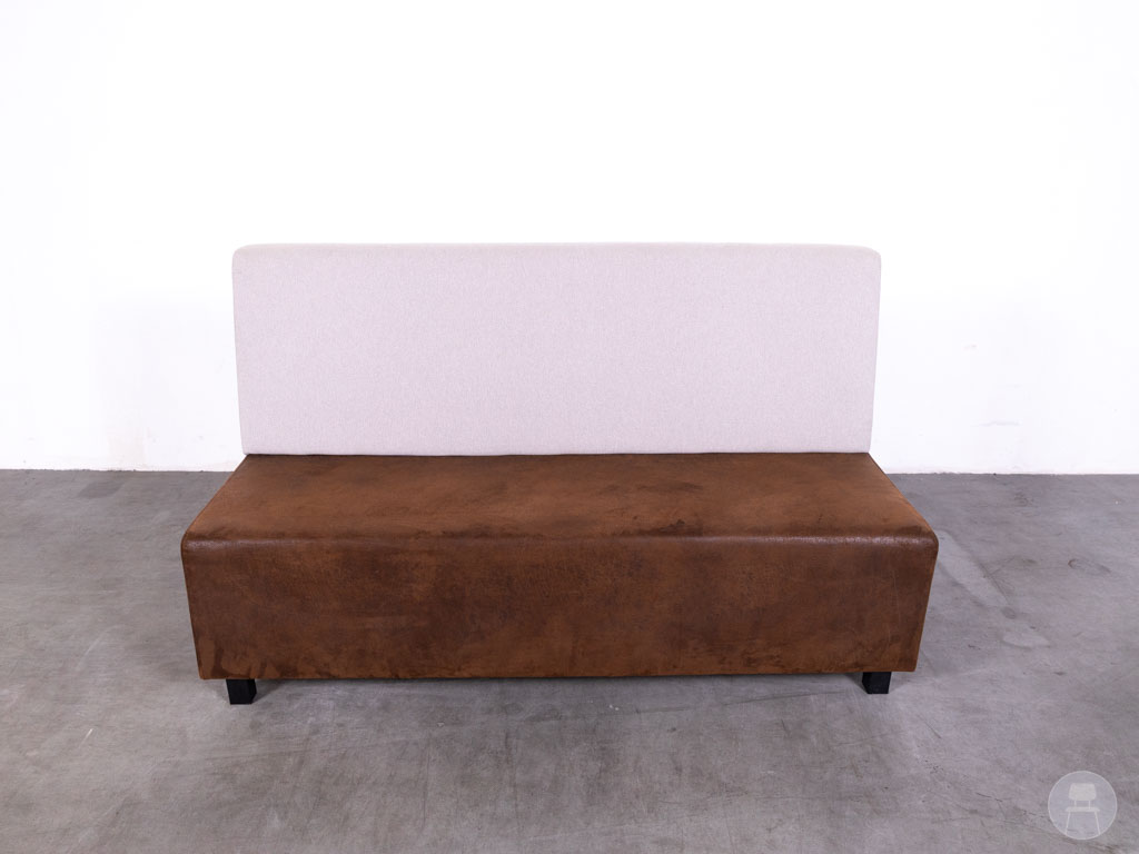 Wandbank Sandy bruin/beige De Arend 200cm is een elegante en comfortabele bank die met haar warme kleurencombinatie moeiteloos in elk interieur past. De beige rugleuning en bruine zitting vormen samen een stijlvol geheel dat rust en warmte uitstraalt. De zachte stof van de bekleding zorgt voor een aangenaam zitcomfort, waardoor deze bank perfect geschikt is voor horecagelegenheden, hotels of ontvangstruimtes waar gasten zich welkom moeten voelen.