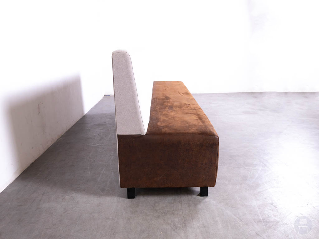Wandbank Sandy bruin/beige De Arend 260cm is een royale en stijlvolle zitoplossing die comfort en uitstraling perfect weet te combineren. De combinatie van de beige rugleuning en de bruine zitting zorgt voor een warme, uitnodigende look die zowel in moderne als klassieke interieurs tot zijn recht komt. De zachte stoffen bekleding voelt comfortabel aan en maakt de bank ideaal voor langdurig zitcomfort in horecazaken, wachtruimtes of ontvangstruimtes.