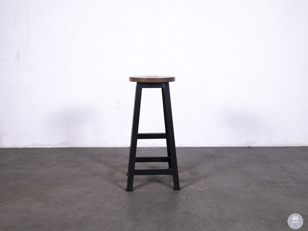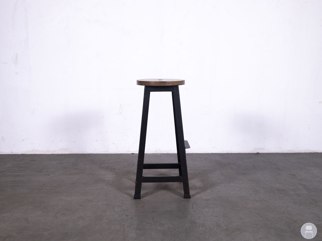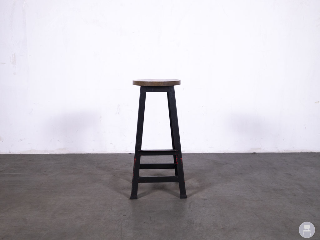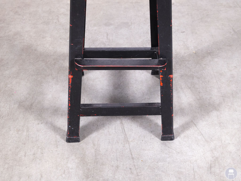 De zwarte stalen poot zorgt voor een stevige basis en is afgewerkt met subtiele slijtplekken in rood, wat het geheel een vintage touch meegeeft. De geïntegreerde voetsteun biedt extra ondersteuning en comfort voor gasten die langer aan de bar zitten, terwijl de stevige bouw zorgt voor langdurig gebruik in drukke omgevingen. Barkruk Guusje is niet alleen duurzaam en sfeervol, maar ook een echte blikvanger met een verhaal.