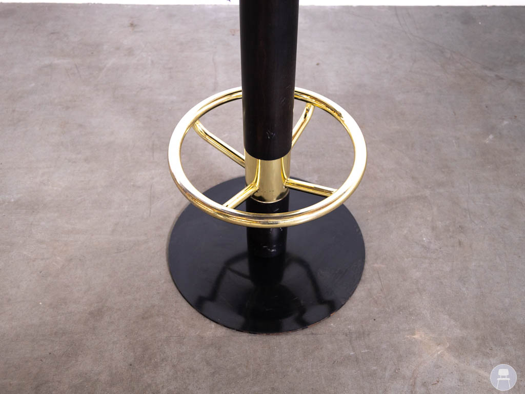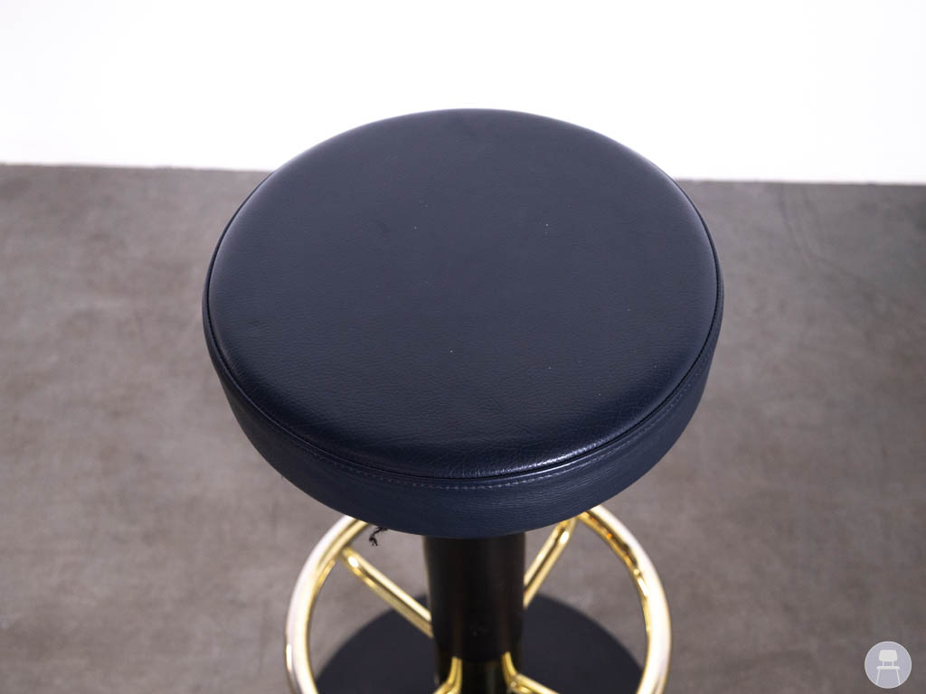 Barkruk Irma blauw goud is een stijlvolle barkruk met een klassieke uitstraling, ideaal voor gebruik aan een bar of hoge tafel in cafés, restaurants of bars. De kruk heeft een ronde zitting bekleed met blauw skai leer, wat zorgt voor een comfortabele zit en een luxe uitstraling. Het zwarte metalen onderstel geeft de barkruk een stevige basis en een tijdloze look. De gouden voetenring biedt extra ondersteuning voor de voeten en zorgt voor een elegant detail dat goed past bij klassieke barinterieurs. Dankzij het solide ontwerp is de barkruk Irma geschikt voor intensief gebruik in de horeca. De combinatie van blauw, zwart en goud geeft deze barkruk een chique en herkenbare barstijl.