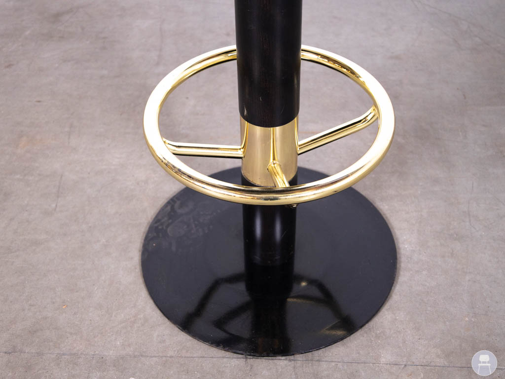 Dankzij de stevige centrale poot en ronde voet biedt deze horeca barkruk stabiliteit en comfort. De geïntegreerde voetsteun verhoogt het zitgemak, waardoor gasten comfortabel kunnen plaatsnemen voor langere tijd.