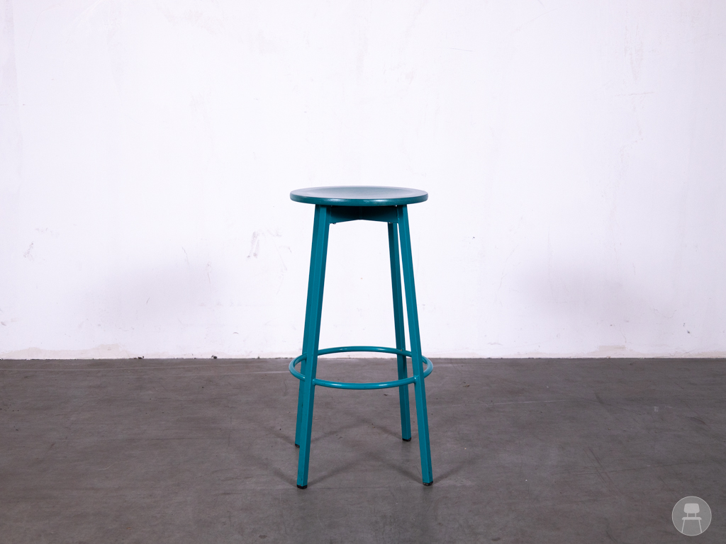 Barkruk Richard blauw is een opvallende en speelse barkruk met een industriële touch, ideaal voor horecazaken die kleur willen toevoegen aan hun interieur. De barkruk heeft een stevig blauw metalen onderstel met voetenring voor extra comfort en stabiliteit. De ronde zitting van hout is afgewerkt in een levendige blauwe beits, waarbij de houtnerf mooi zichtbaar blijft. Deze tweedehands kruk is perfect voor cafés, lunchrooms of creatieve werkplekken die op zoek zijn naar duurzaam en karaktervol meubilair.