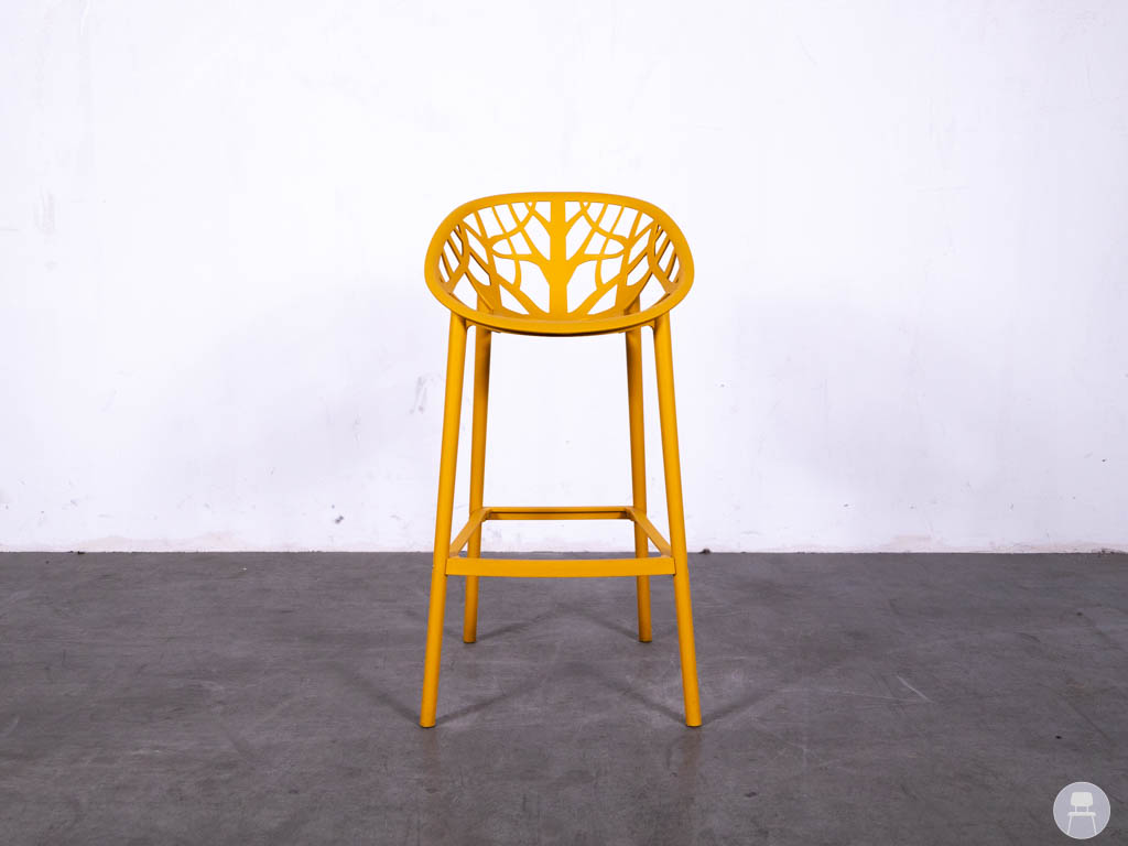 Barkruk Siesta crystal geel is een opvallende en moderne barkruk die zowel binnen als buiten in de horeca perfect tot zijn recht komt. Deze gele barkruk is volledig vervaardigd uit stevig kunststof en heeft een unieke rugleuning met opengewerkt boomstructuur-design, wat zorgt voor een luchtige, speelse uitstraling.
