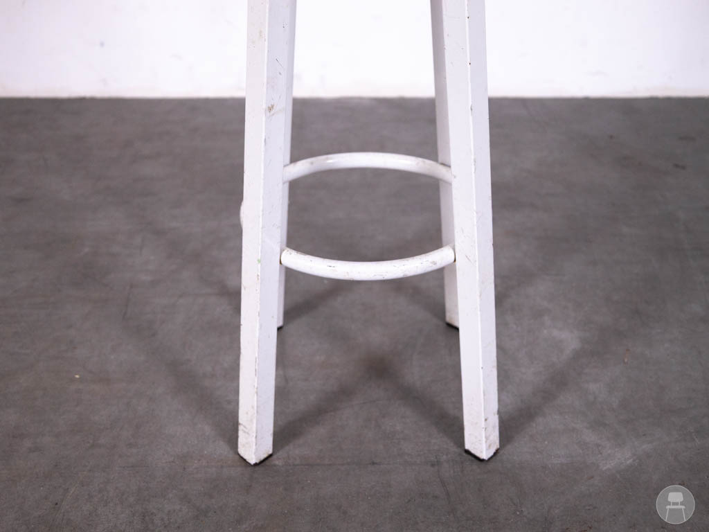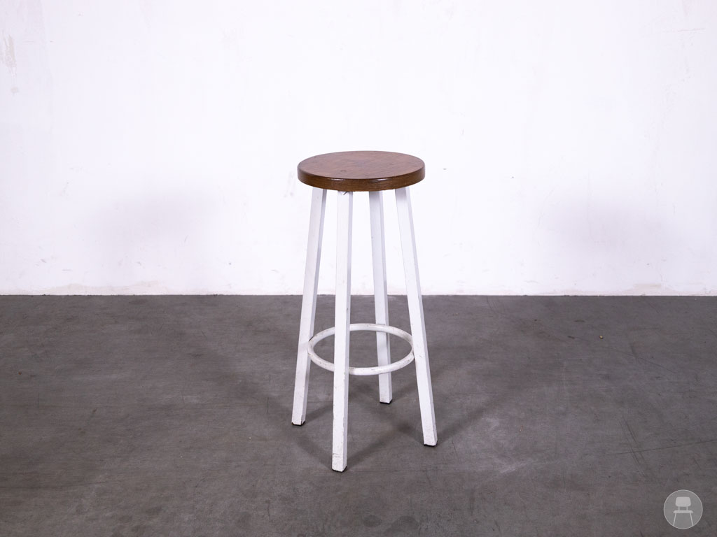 Barkruk Volendam Cafetaria is een klassieke en robuuste barkruk die perfect past in cafetaria’s, snackbars, bruin cafés of retro horecazaken. De combinatie van een wit metalen onderstel met een ronde houten zitting geeft deze kruk een no-nonsense en functionele uitstraling. Dankzij het slanke frame neemt hij weinig ruimte in, terwijl de voetsteun zorgt voor extra zitcomfort. Ideaal voor aan een hoge bar of statafel.