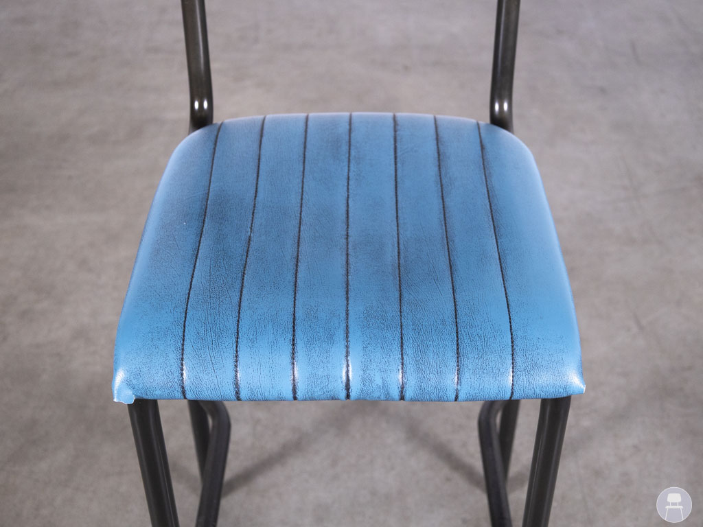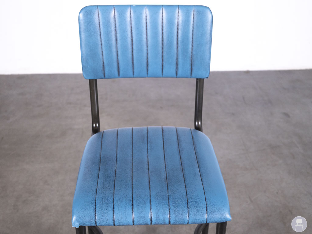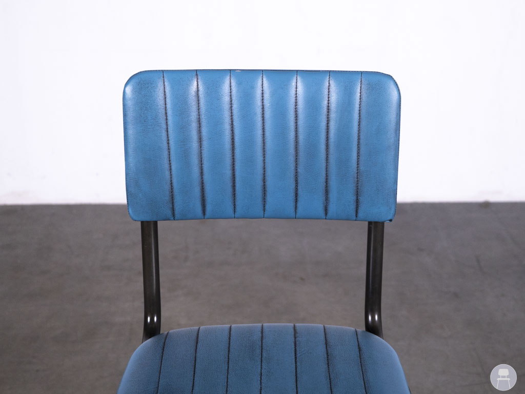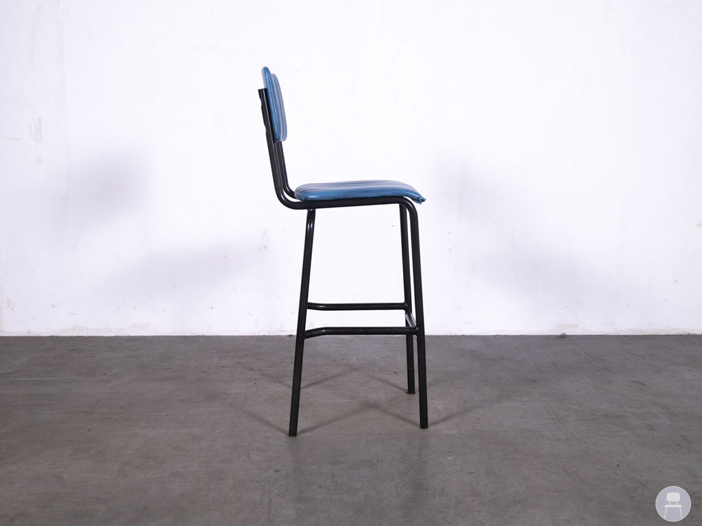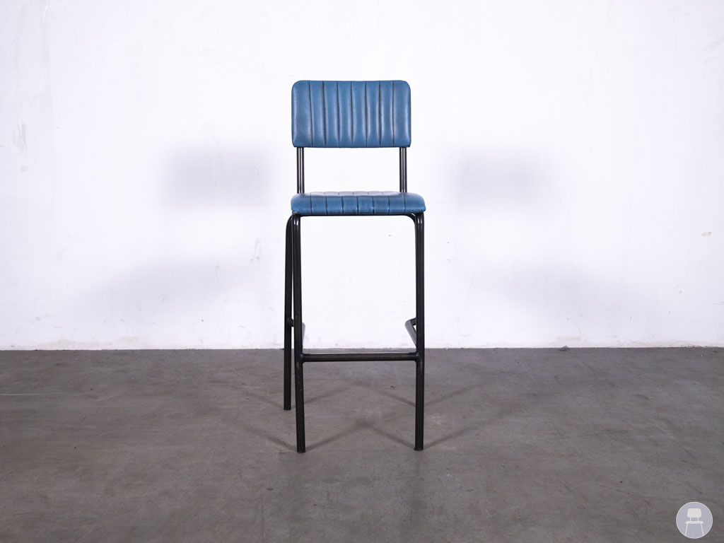 Barkruk Wolda blauw is een echte blikvanger voor elke horecazaak met een industriële of retro uitstraling. Deze barkruk combineert een stijlvol blauw zitvlak van skai leer met een robuust stalen frame. De verticale stiksels in de rugleuning en zitting geven het ontwerp een speels, vintage karakter. Dankzij de voetensteun en stevige constructie zit deze kruk niet alleen mooi, maar ook comfortabel.