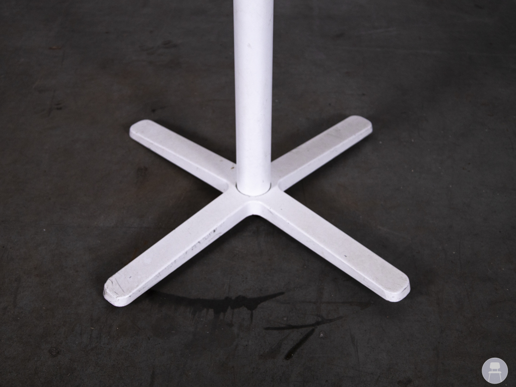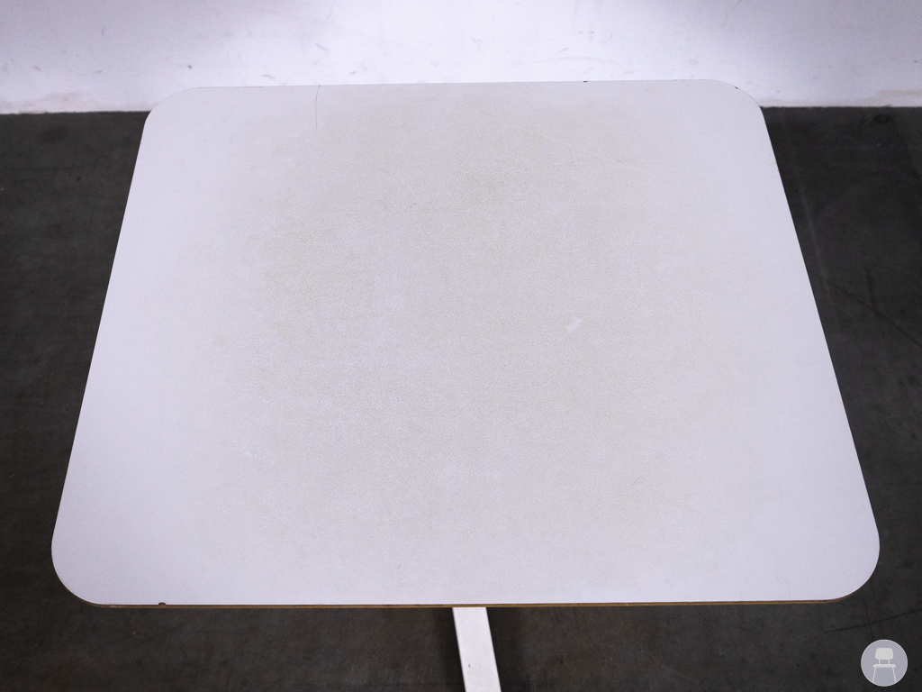 Let op: het blad vertoont beschadigingen en verkleuringen door gebruik, wat op de foto minder goed zichtbaar is. Deze sporen van gebruik doen echter geen afbreuk aan de functionele inzetbaarheid van de tafel en geven een licht geleefd karakter. Perfect voor wie een budgetvriendelijke oplossing zoekt voor zijn horecainrichting.