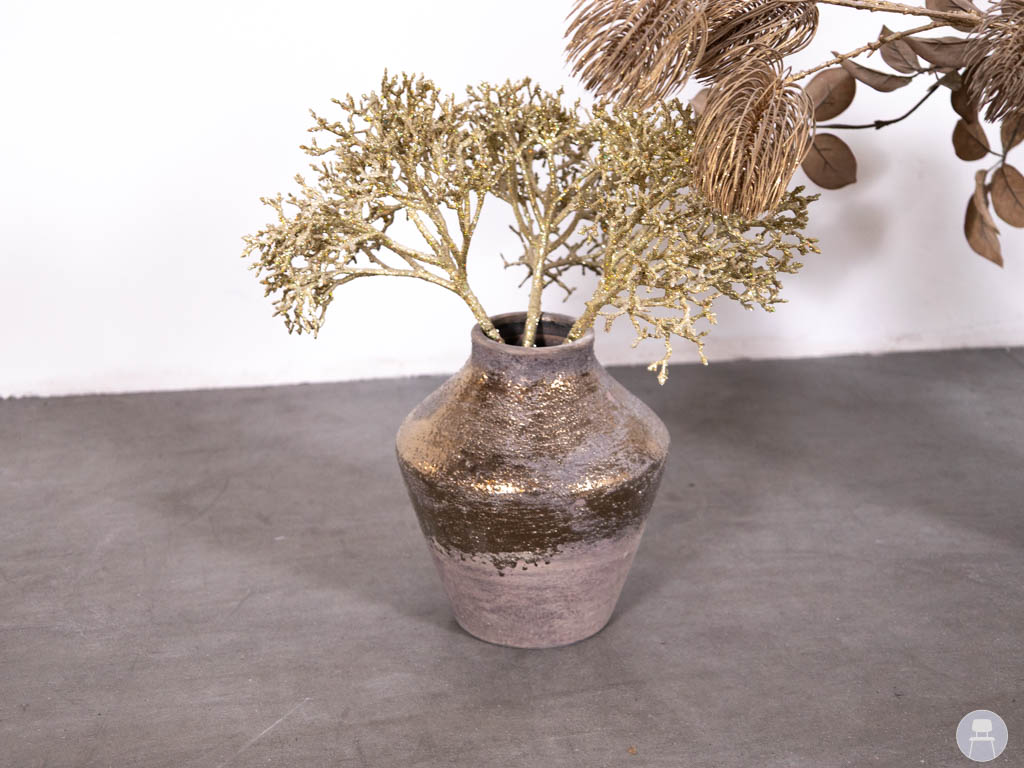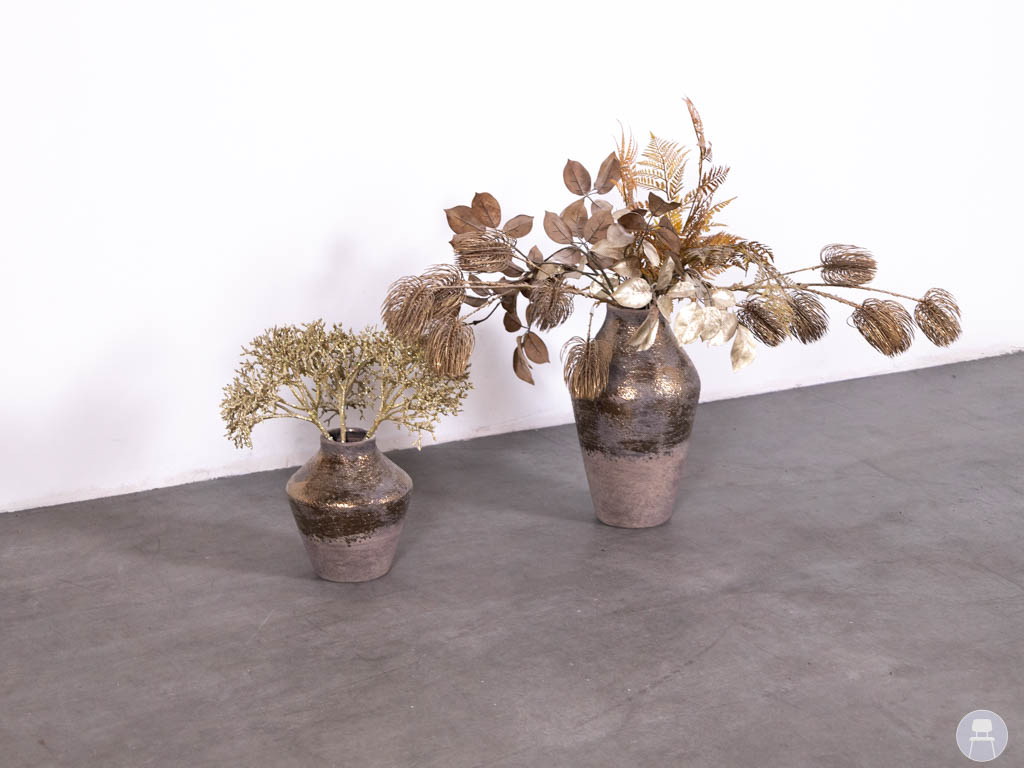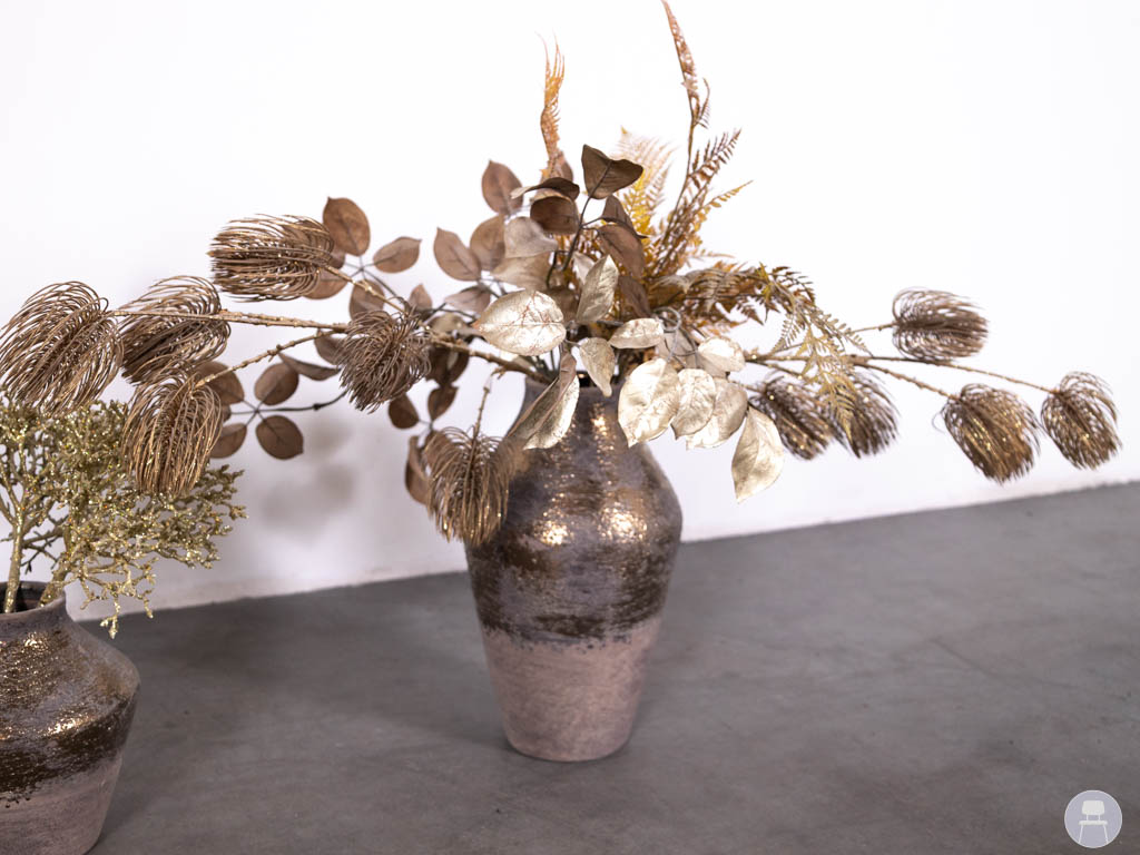 1 set 2 stuks Vaas met siertakken Herfst goud is een sfeervolle decoratie set die perfect past binnen een warme en stijlvolle horeca inrichting. Deze set bestaat uit 2 vazen inclusief siertakken en is uitgevoerd in een goudkleurige afwerking. De vazen hebben een luxe uitstraling door het glanzende oppervlak, terwijl de herfstachtige siertakken zorgen voor een natuurlijke en trendy look. Ideaal als decoratie op tafels, balies of in loungehoeken binnen restaurants, cafés of hotels. De combinatie van goudtinten en natuurlijke elementen sluit perfect aan bij populaire interieurtrends en zorgt direct voor extra sfeer in elke ruimte. Dankzij het kant-en-klare karakter is deze set direct inzetbaar als horeca decoratie.