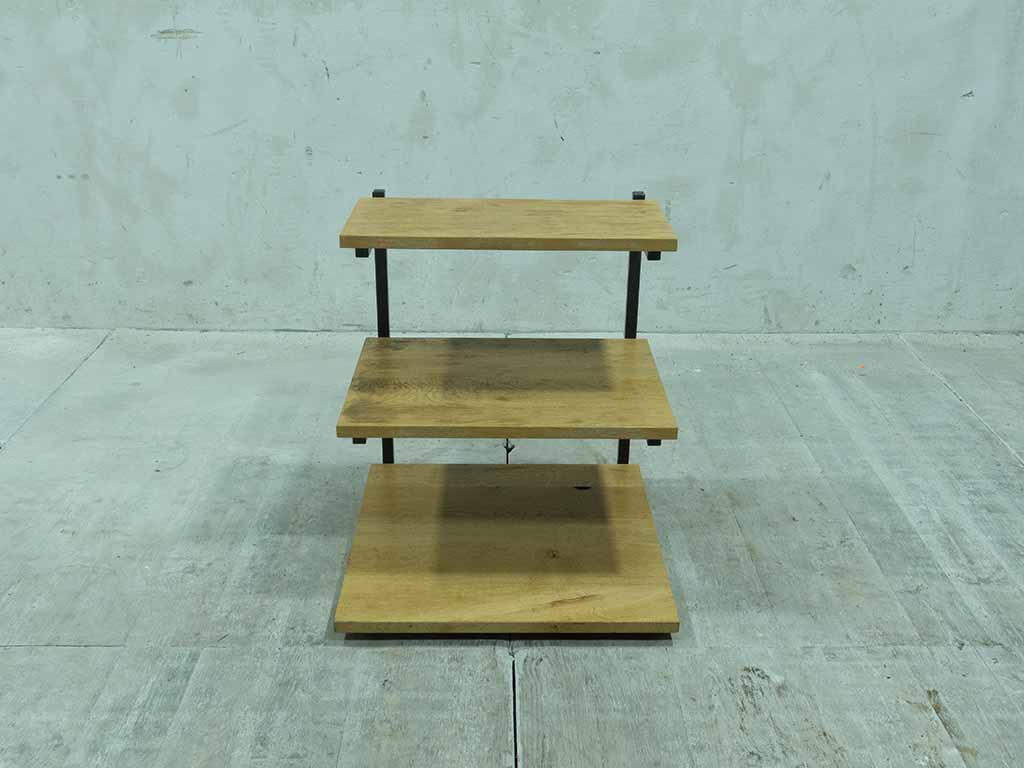 Etagere Romy is een leuk item om mee te decoreren. De etagere is gemaakt van staal en heeft eikenhouten planken. Erg leuk om items op te presenteren.