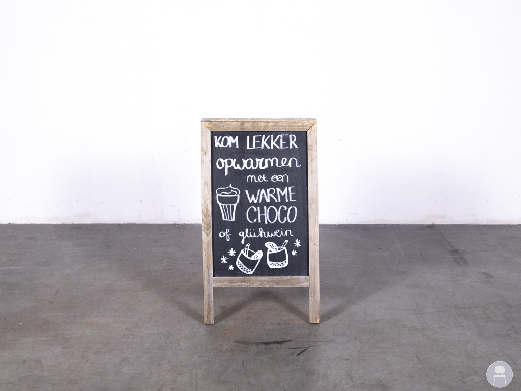 Krijtstoepbord Lenny 50x80cm de ideale eyecatcher voor jouw koffiebar, terras of winkel. Het dubbelzijdige krijtbordoppervlak biedt voldoende ruimte voor creatieve teksten of dagaanbiedingen, en is eenvoudig te beschrijven en schoon te maken. De natuurlijke, verweerde houtlook geeft het bord een charmante, rustieke uitstraling die past bij zowel binnen- als buitengebruik.