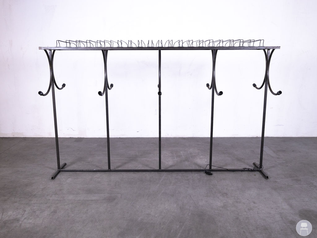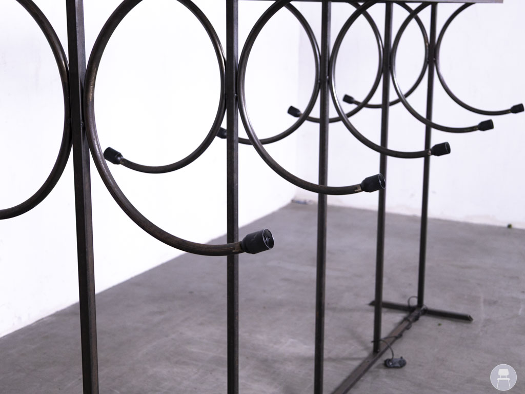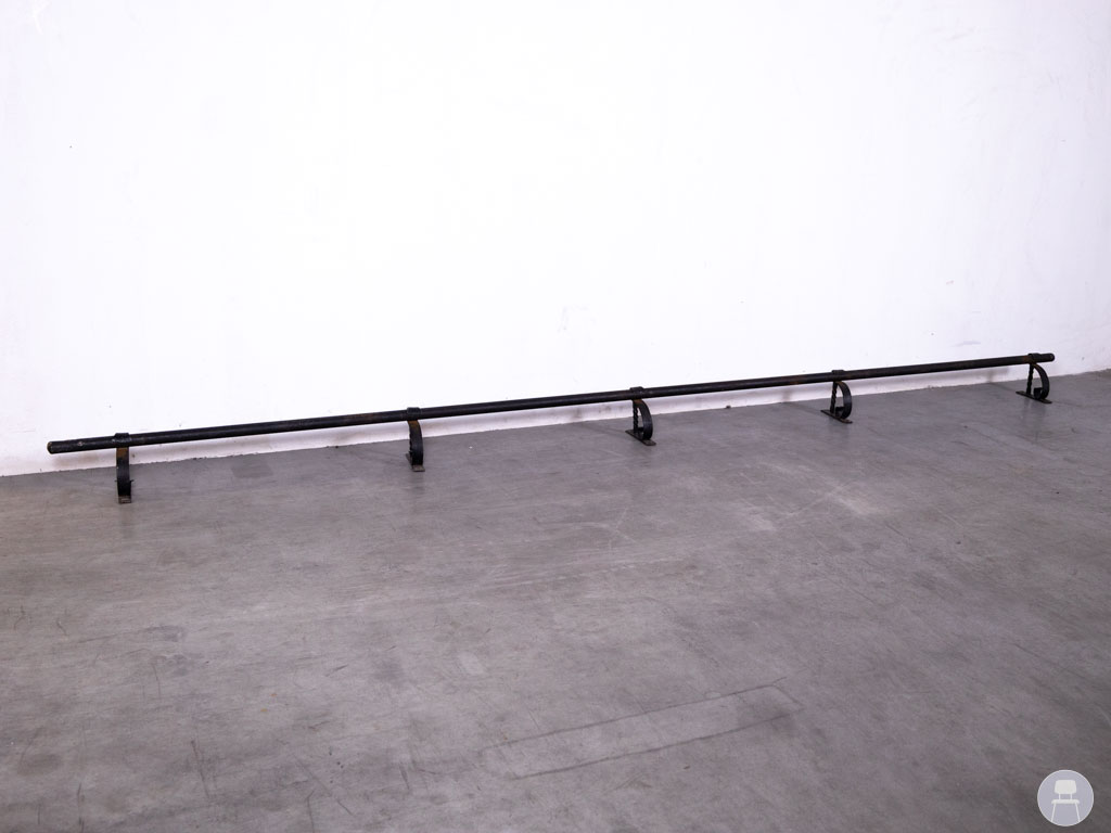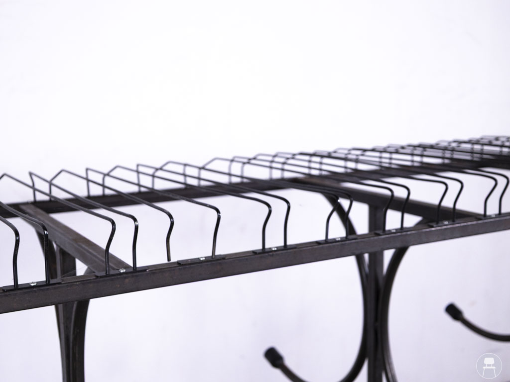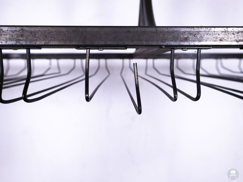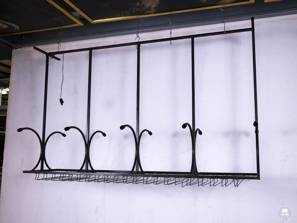 Ophangrek wijnglazen Cocktail 250cm ideaal voor gebruik in een bar, restaurant of cocktailruimte. Dit metalen rek is uitgevoerd in een industriële stijl en biedt ruimte voor het ophangen van meerdere glazen boven de bar. Het wijnrek heeft een lengte van ca. 250 cm en beschikt over diverse rekjes aan de bovenzijde waar glazen netjes in kunnen worden geschoven. Eén rekje ontbreekt, maar het geheel blijft stevig en goed bruikbaar. In het midden is ruimte voorzien om lampjes te hangen – deze werken op batterijen – wat zorgt voor een sfeervol accent boven de bar of werktafel. Gebruik goed bevestigingsmateriaal om het rek op te hangen.