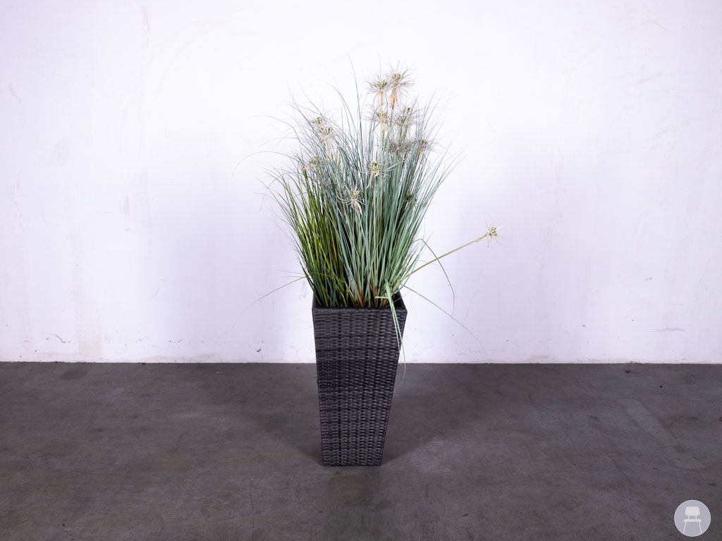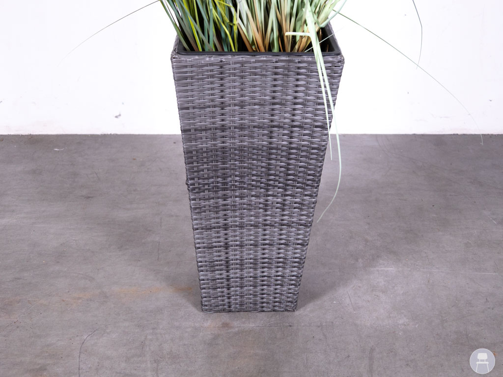 Plantenbak Mike 150x36cm brengt direct sfeer in elke ruimte met zijn volle kunstplant en moderne uitstraling. De hoge, smalle bak is uitgevoerd in een donkergrijze wicker mand, wat zorgt voor een natuurlijke en toch onderhoudsvrije oplossing. De kunstplant is realistisch vormgegeven met lange groene sprieten en subtiele bloeiwijze, perfect voor het creëren van een groene touch zonder gedoe met water geven. De mand is los, wat flexibel gebruik mogelijk maakt in zowel horeca-interieurs als op het terras. Een decoratieve en duurzame blikvanger voor elke professionele ruimte.