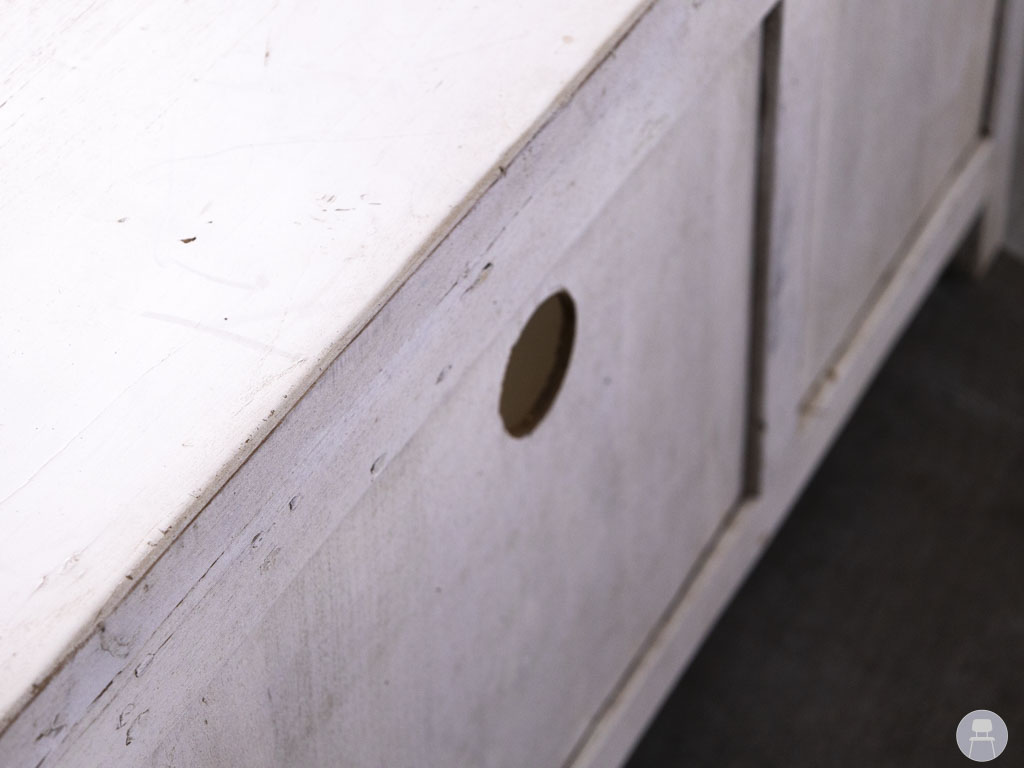 Met zijn afmetingen van 135 cm breed en 53 cm diep past deze kast perfect in horecagelegenheden, ontvangstruimtes of als decoratief element in een winkel of lobby. Het meubel toont gebruikssporen die bijdragen aan de authentieke vintage look (zie foto’s), wat het karakter en de doorleefde charme versterkt. De lade kan open, de deurtjes niet.