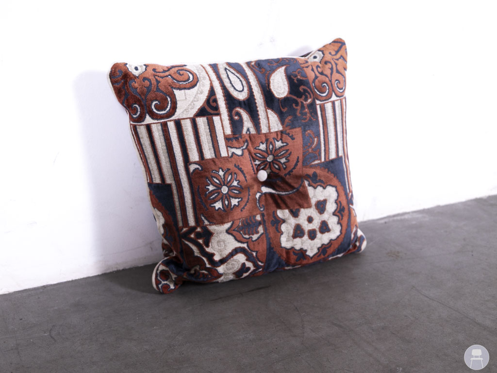Kussen Juliana print velvet rood 45x43cm is een sfeervolle toevoeging aan ieder horecainterieur met karakter. De rijke velvet stof in rood, blauw en beige is voorzien van een klassiek patroon dat direct warmte en stijl toevoegt aan je zitgedeelte. Dankzij het compacte formaat is dit sierkussen perfect geschikt voor banken, fauteuils of loungehoeken. De centrale knoop geeft het kussen een speels detail en extra vormvastheid. Een tweedehands item met een uniek design, ideaal voor horecazaken met een vintage, retro of oosterse inrichting.