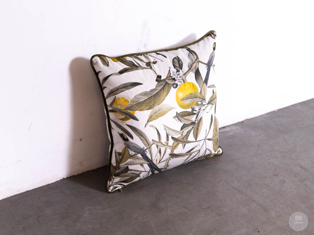 Kussen Tropical 45x45cm is een decoratief en sfeervol kussen dat perfect past binnen horeca-interieurs zoals restaurants, cafés, hotels en lounges. De opvallende print met bladeren, vogels en gele accenten geeft het kussen een frisse en tropische uitstraling.