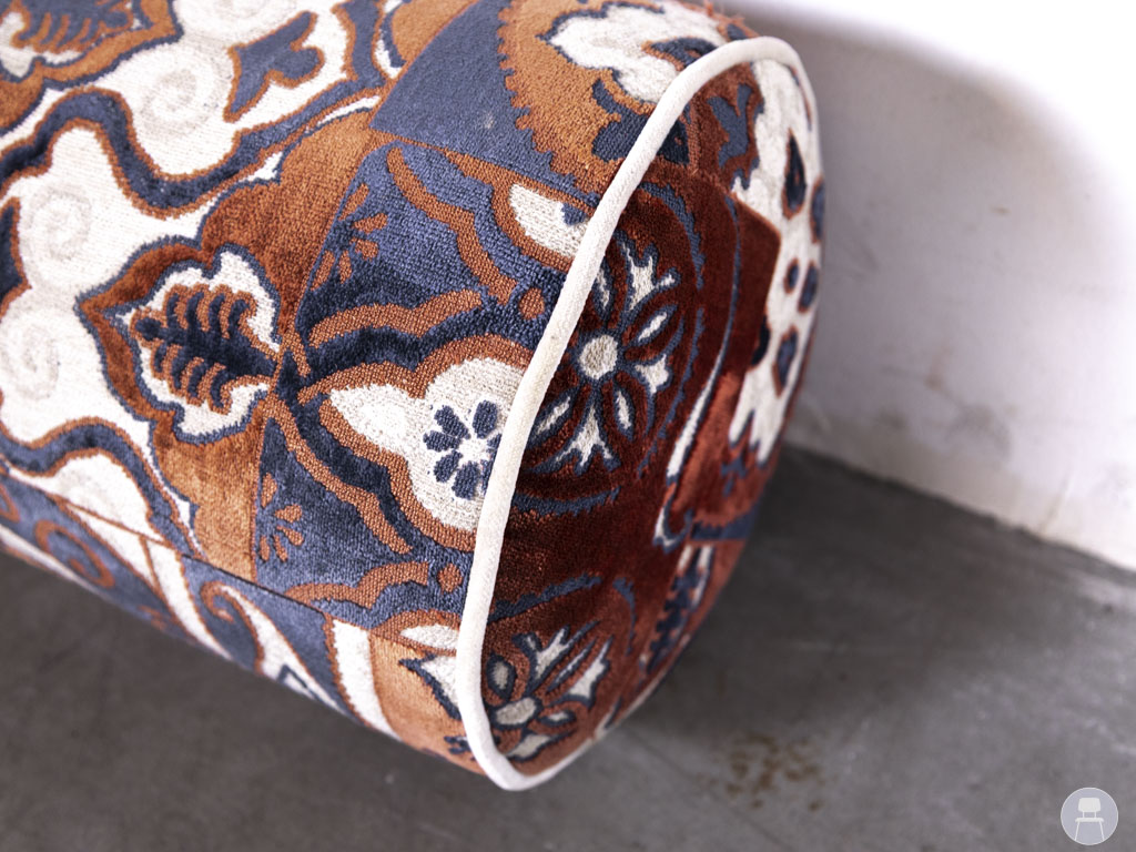 Het rolkussen is voorzien van twee klittenbandstrips aan de onderzijde, maar beide strips hebben dezelfde kant van het klittenband en kunnen dus niet aan elkaar worden bevestigd. Hierdoor is het kussen vooral geschikt om los te gebruiken of bijvoorbeeld tussen de zitkussens van een bank te klemmen voor extra steun of decoratie. Perfect voor horecazaken met een retro, oosters of eclectisch interieur.