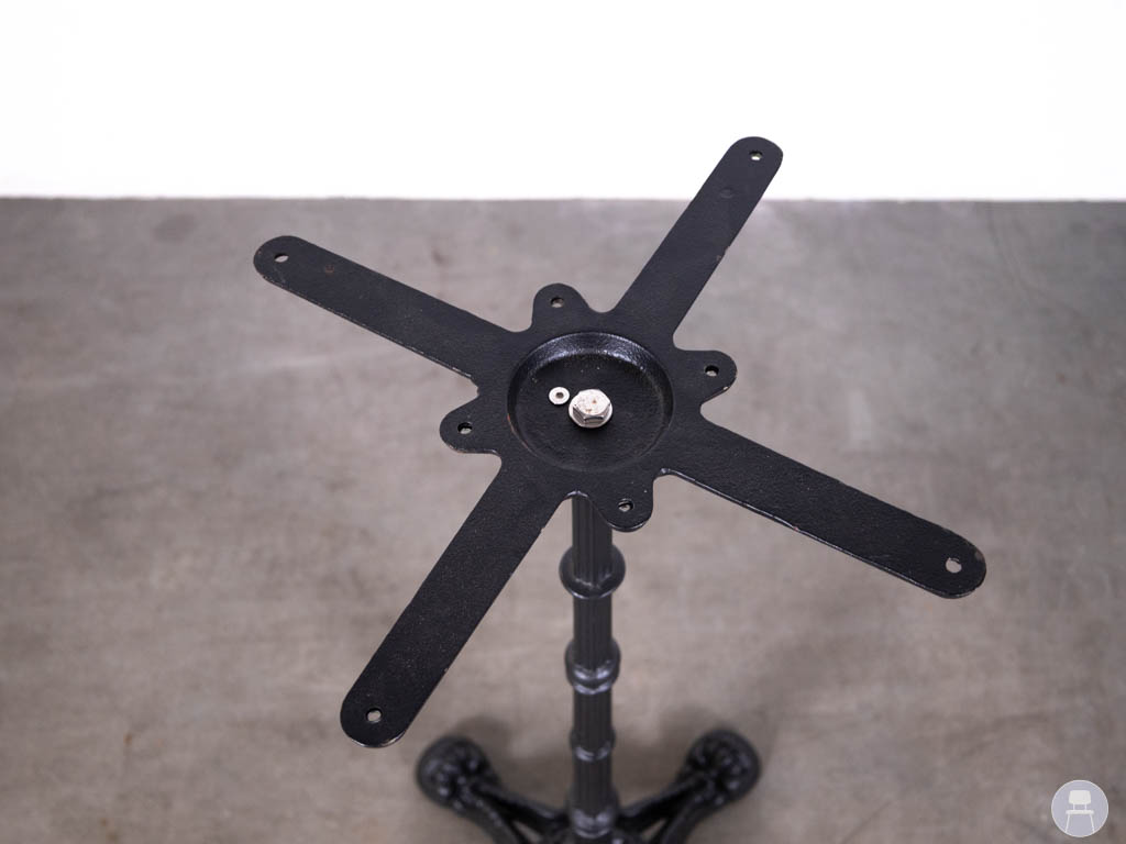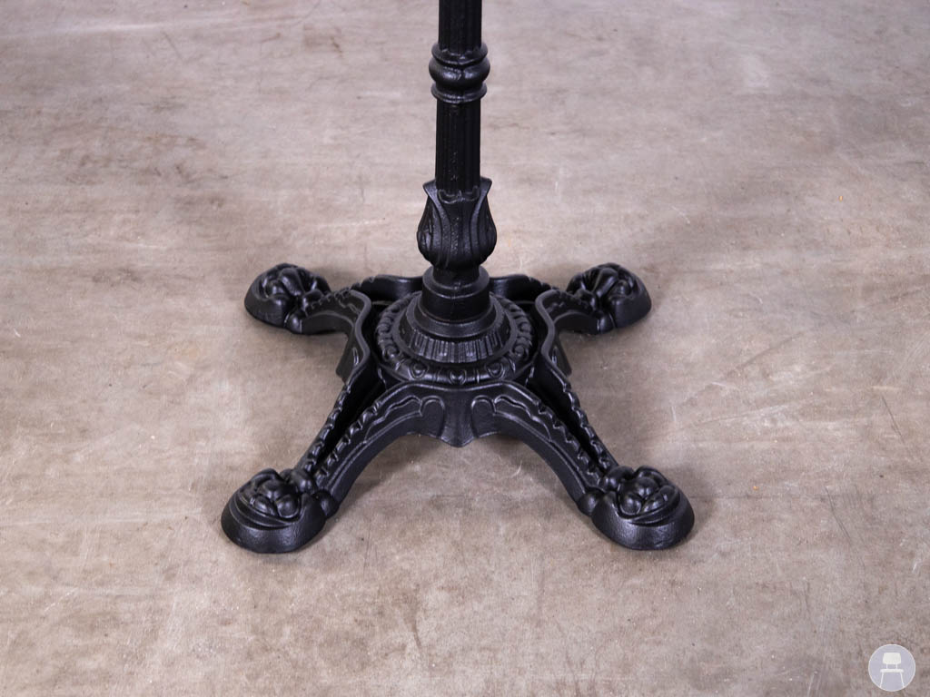 Het onderstel is uitgevoerd in zwart gietijzer, wat zorgt voor een robuuste uitstraling en uitstekende stabiliteit. De decoratieve voet geeft het statafel onderstel Castle Amy een authentiek en tijdloos karakter dat goed past bij zowel klassieke als industriële horeca-interieurs.