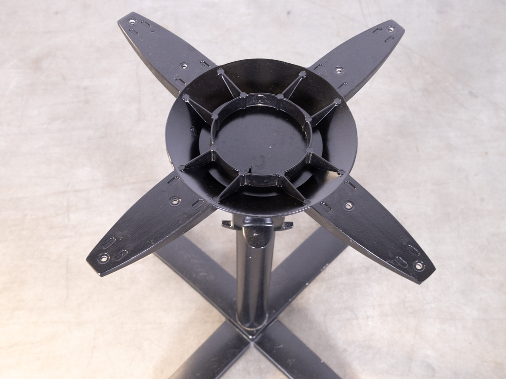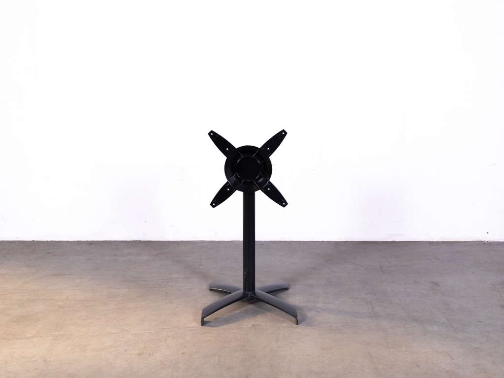 Klap-tafelonderstel Erik 4T zwart is een praktisch en stevig horeca tafelonderstel, uitgevoerd in zwart aluminium. Dankzij het lichte gewicht is dit onderstel eenvoudig te verplaatsen, wat het ideaal maakt voor gebruik op terrassen en in flexibele horecaruimtes.