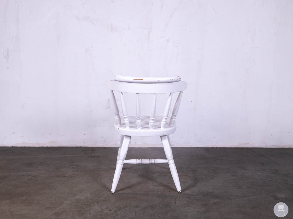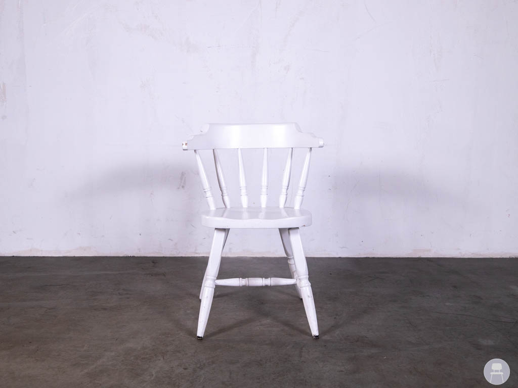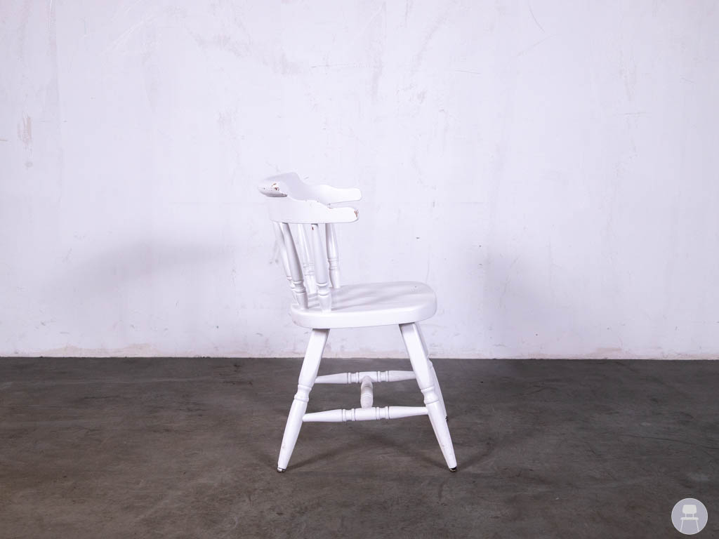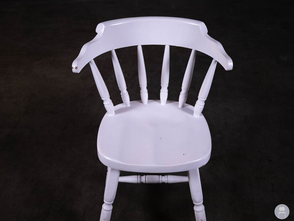 De cafestoel is uitgevoerd in wit gelakt hout, wat zorgt voor een frisse en lichte uitstraling in het interieur. Dankzij de stevige houten constructie is de boerenstoel geschikt voor dagelijks gebruik in de horeca.