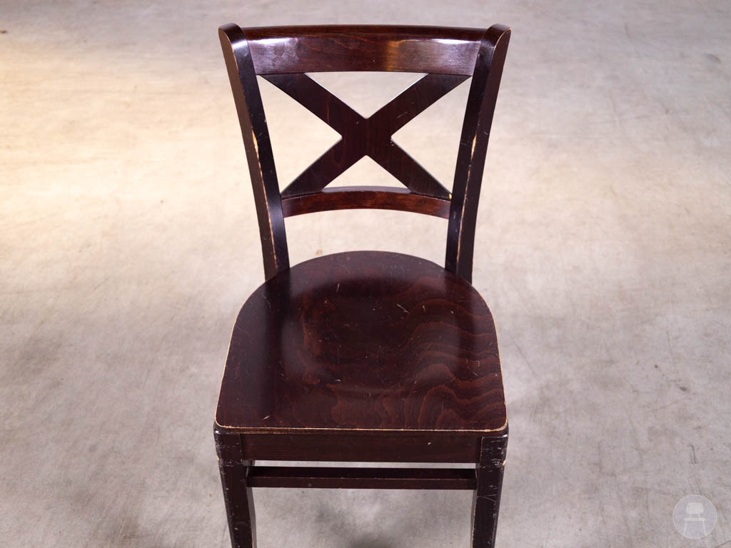Cafestoel Crossback Huub rood/bruin is een klassieke en sfeervolle horecastoel, uitgevoerd in hout in een warme rood bruine kleur. Deze cafestoel heeft een herkenbaar crossback design met kruislings geplaatste rugleuning, wat zorgt voor een landelijke en authentieke uitstraling.