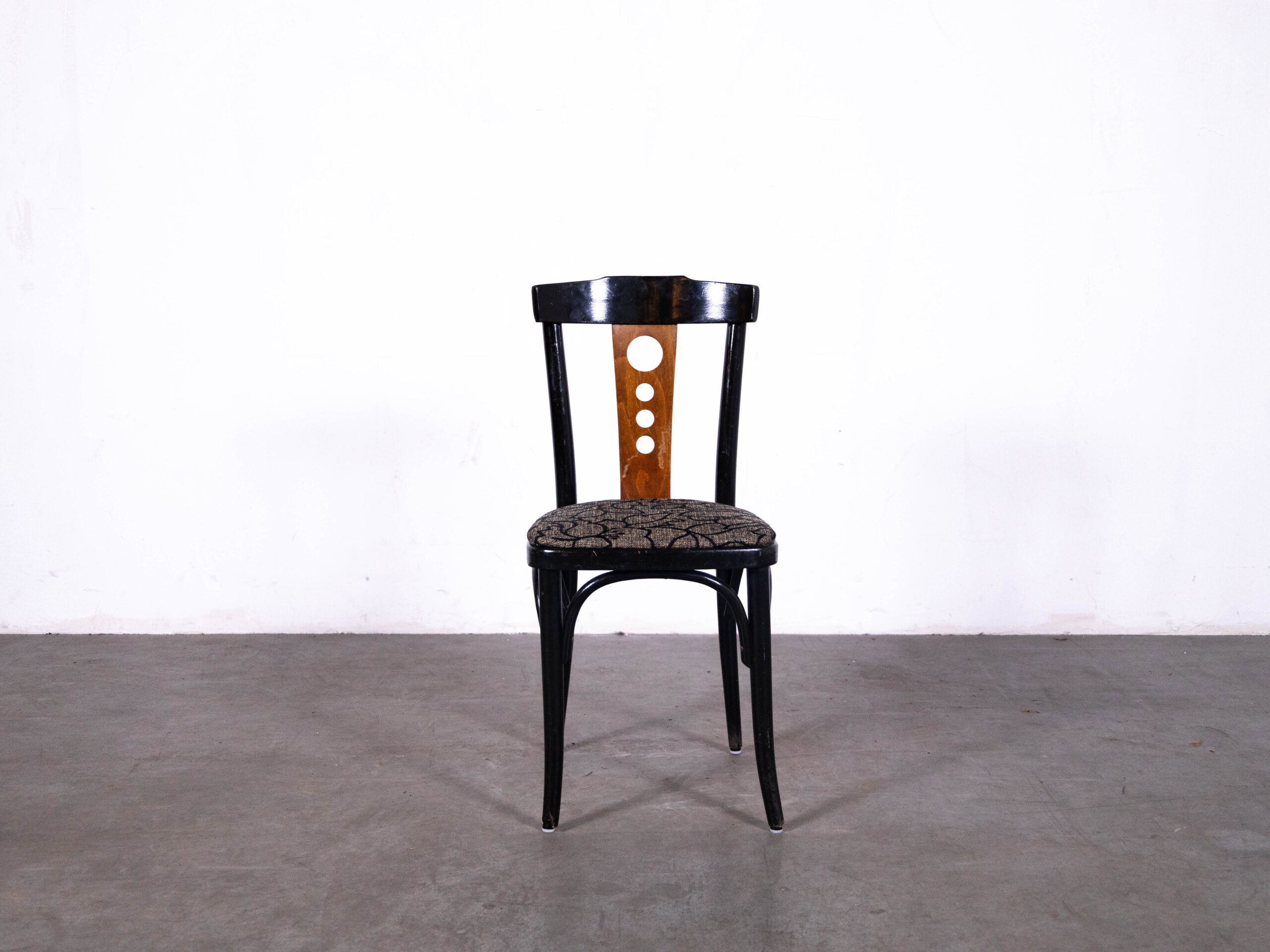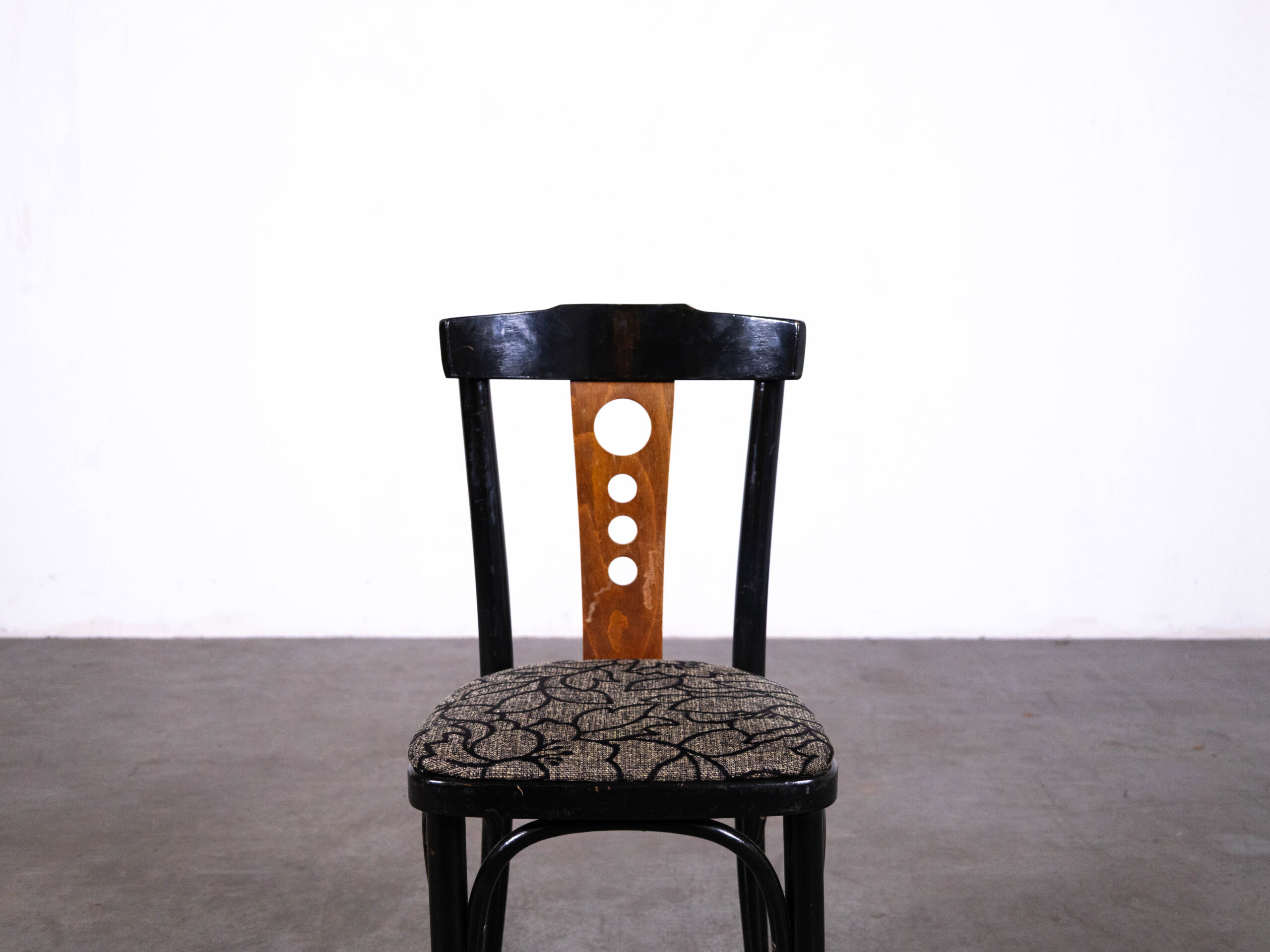 De Cafestoel Jantje Bloemen is een karaktervolle horecastoel met een speelse en klassieke uitstraling. Deze stijlvolle cafestoel valt direct op door de bijzondere rugleuning met ronde details en het comfortabele zitvlak met bloemmotief. De combinatie van het zwarte houten frame en de warme houtkleur in de rug geeft deze stoel een unieke, authentieke look die perfect past in een café, restaurant of brasserie.