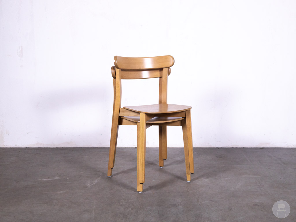 Cafestoel Loetje is een lichte houten stoel met een elegante ronde rugleuning. Dankzij het minimalistische design is deze stoel perfect inzetbaar in cafés, lunchrooms of brasserieën waar uitstraling en comfort samenkomen. De massief houten constructie maakt de stoel stevig, maar blijft toch luchtig ogen in het interieur. Loetje is stapelbaar en makkelijk te reinigen, ideaal voor de dynamiek van de horeca.