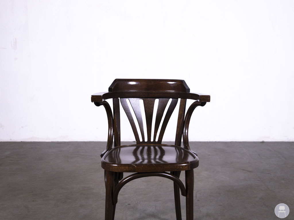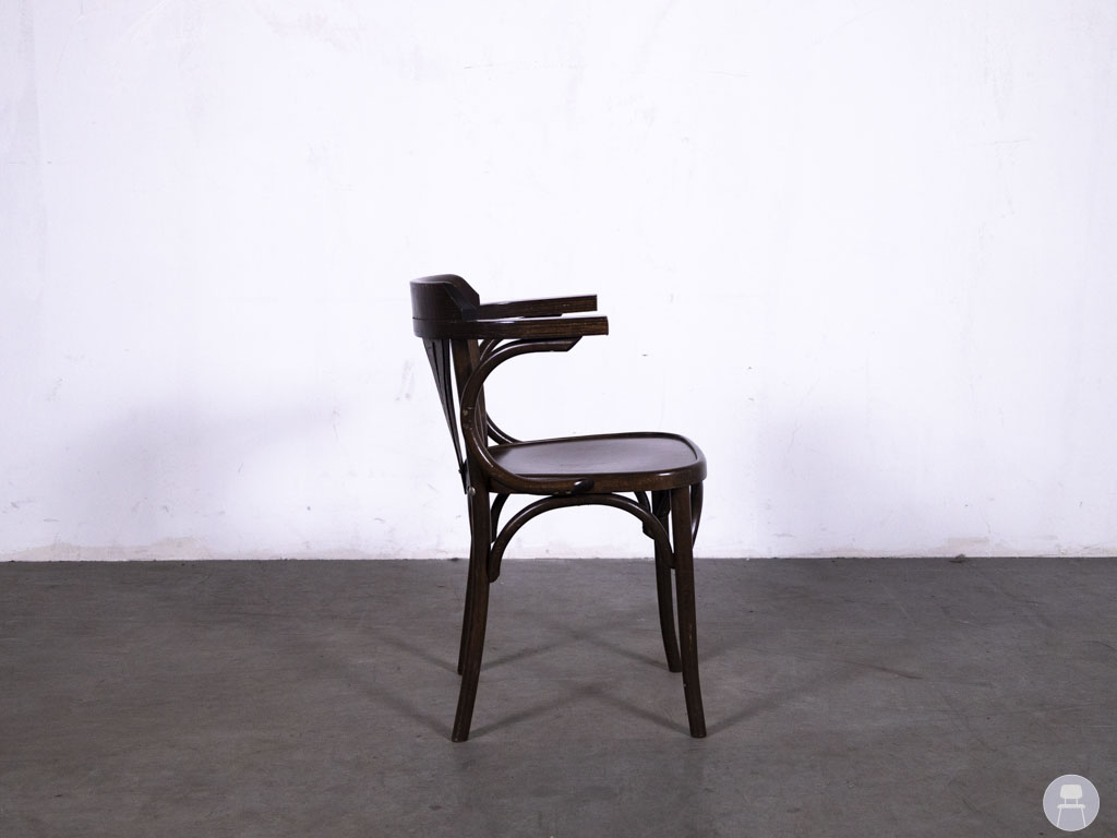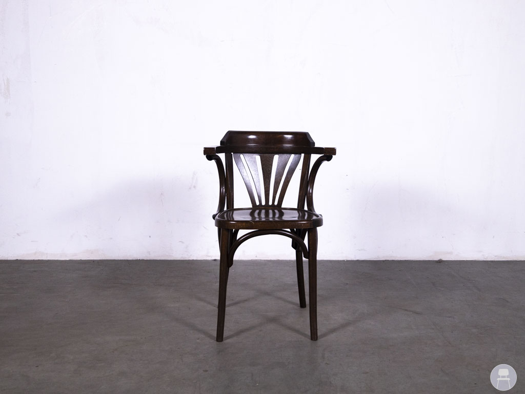 Het donkere hout heeft een warme diepe glans die prachtig combineert met zowel lichte als donkere interieurs. Of hij nu wordt ingezet in een stijlvol café, een vintage restaurant of een sfeervolle hotelbrasserie deze stoel voegt direct karakter toe aan de ruimte. Het massieve frame en de zorgvuldige afwerking maken hem bovendien geschikt voor intensief gebruik zonder in te leveren op uitstraling.