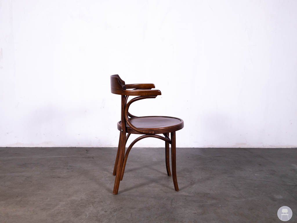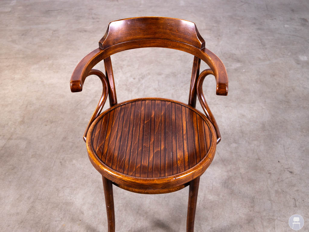 De stoel heeft een ronde zitting en een elegante rugleuning met gebogen armleuningen, wat zorgt voor een comfortabele zit en een tijdloos design. Dankzij de stevige houten constructie is de caféstoel Walter van Hutten geschikt voor dagelijks gebruik in de horeca.