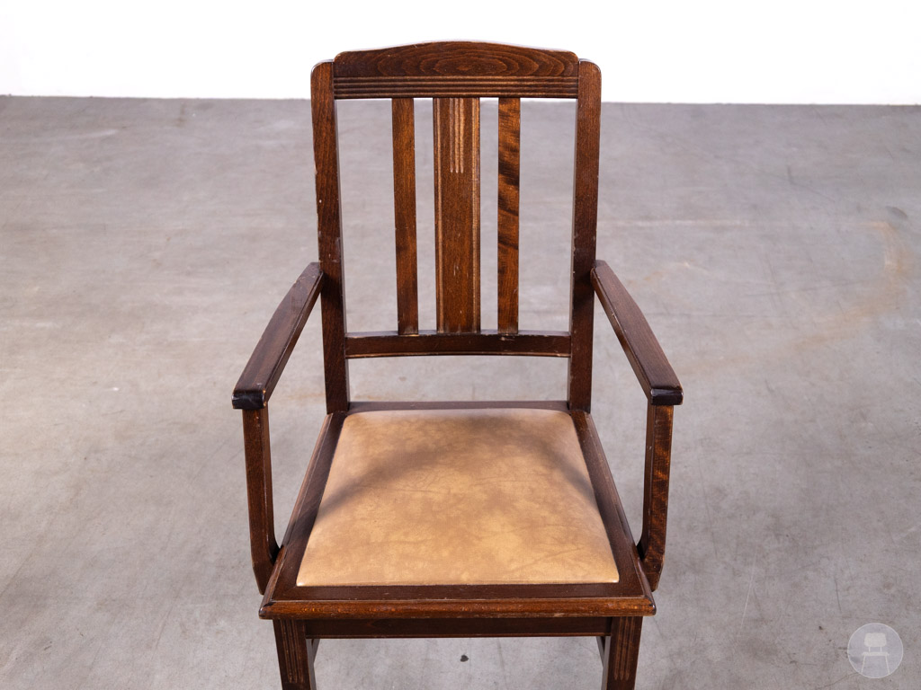 Horecastoel Egbert bruin ma is een klassieke en representatieve horecastoel die perfect past binnen restaurants, hotels en cafés met een stijlvolle inrichting. Dankzij het elegante ontwerp en de armleuningen biedt deze stoel extra comfort voor gasten. De cafestoel is uitgevoerd met een stevig houten frame in een warme bruine kleur, wat zorgt voor een duurzame en tijdloze uitstraling. De zitting is bekleed met kunstleer, wat niet alleen comfortabel zit maar ook eenvoudig te reinigen is. Ideaal voor intensief horeca gebruik. De rechte rugleuning met subtiele details geeft de stoel een nette en professionele look. Door de combinatie van hout en kunstleer is deze horecastoel zowel praktisch als sfeervol inzetbaar in diverse horeca concepten.
