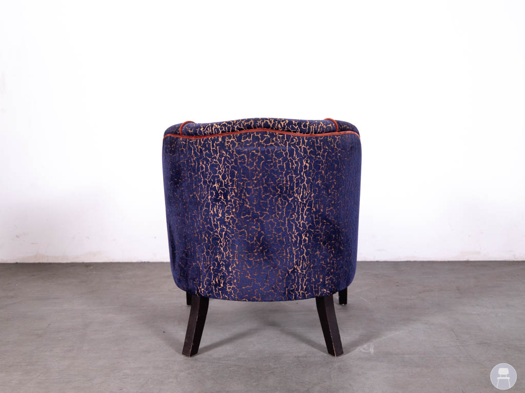 Horecafauteuil Olga print blauw/rood is een opvallende en comfortabele horecastoel met een unieke, klassieke uitstraling.