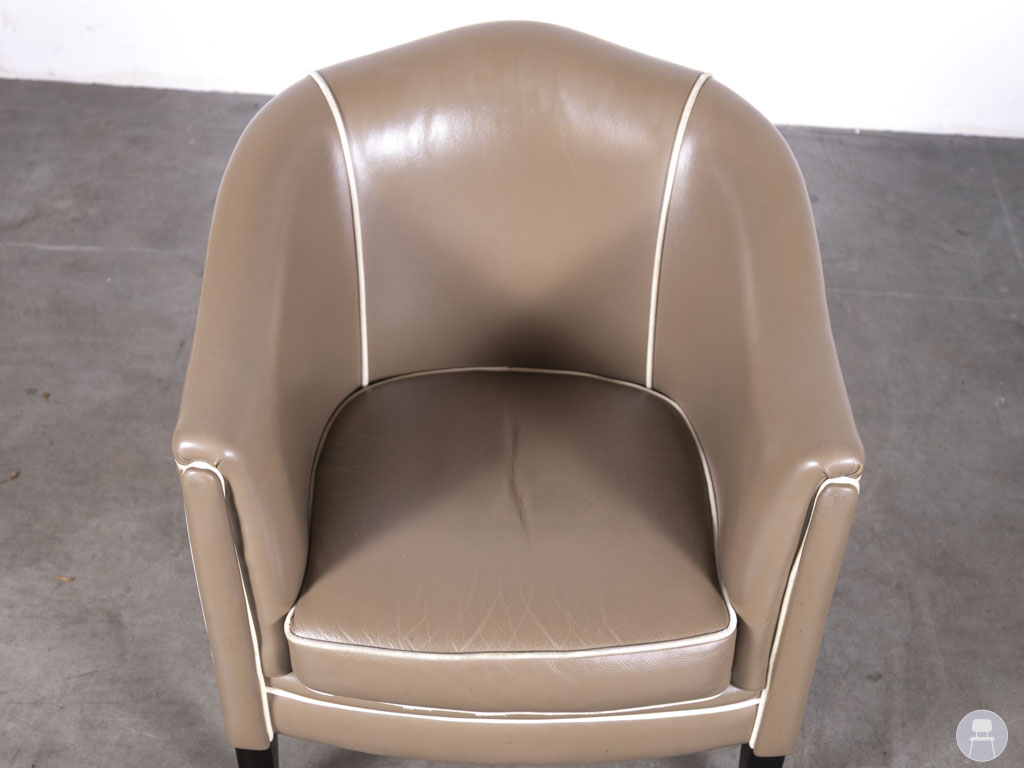Horecafauteuil Olga taupe is een stijlvolle en comfortabele fauteuil die perfect past in zowel klassieke als moderne horecagelegenheden. Deze horecafauteuil is volledig bekleed met taupekleurig kunstleder, wat zorgt voor een elegante uitstraling én eenvoudig onderhoud. De subtiele witte biezen langs de naden geven het ontwerp een verfijnde afwerking.