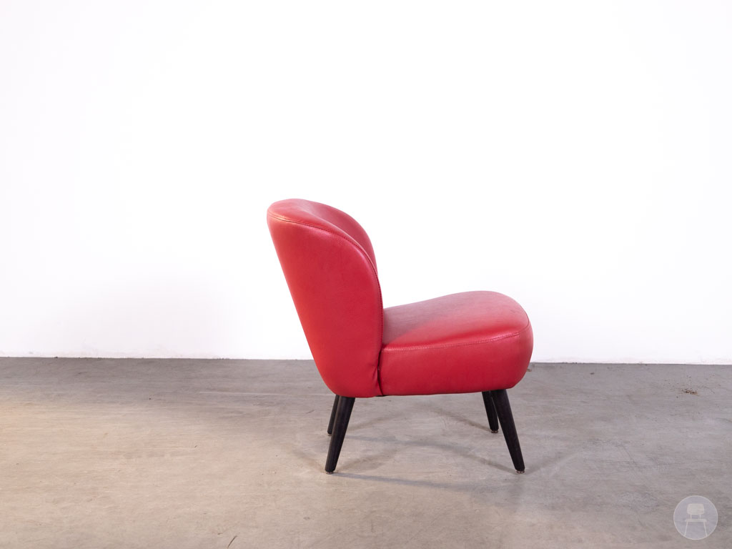 Horecafauteuil Ties skai rood is een comfortabele en opvallende horecafauteuil met een moderne uitstraling. Deze fauteuil is uitgevoerd in skai leer (kunstleer) in een krachtige rode kleur, wat zorgt voor een luxe en uitnodigende look. De ronde vormen van de zitting en rugleuning bieden extra zitcomfort, ideaal voor gebruik in restaurants, cafés of loungehoeken. Het stevige houten onderstel in donkere tint geeft de stoel een stabiele basis en een mooi contrast met de bekleding.