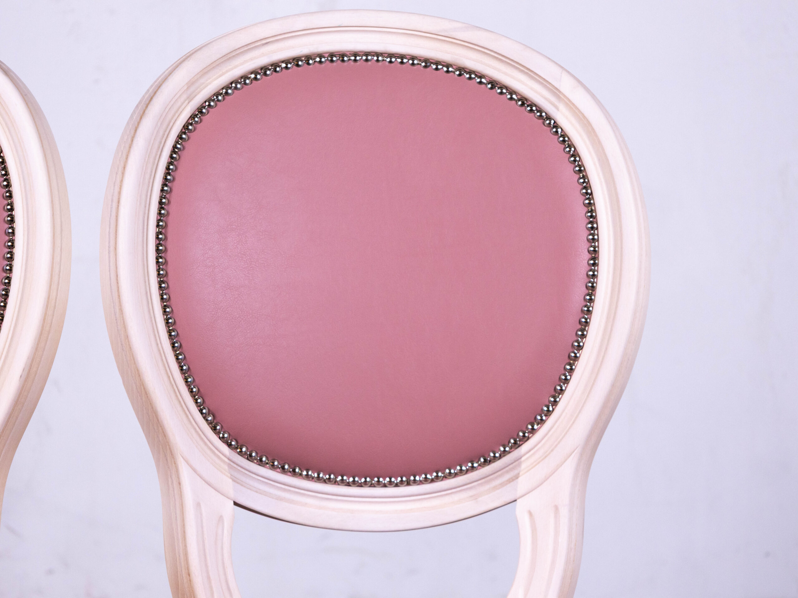 De 1 set 2 Horecastoelen Barok Princes roze straalt elegantie en karakter uit en is een echte blikvanger binnen iedere exclusieve horeca inrichting. Deze stijlvolle barok horecastoelen combineren een klassiek vormgegeven houten frame met een zachte roze bekleding, afgewerkt met sierlijke nagels rondom de zitting en rugleuning. De ronde rug en verfijnde details geven deze roze horecastoelen een luxe uitstraling die perfect past in restaurants, tearooms, hotels of high-end projectinrichtingen. Dankzij de comfortabele, gestoffeerde zitting bieden deze gestoffeerde horecastoelen een aangename zitervaring voor uw gasten. Het stevige houten onderstel zorgt voor stabiliteit en maakt de stoelen geschikt voor dagelijks gebruik binnen de horeca. Deze set van twee klassieke horecastoelen voegt sfeer, warmte en een onderscheidende uitstraling toe aan ieder interieurconcept waar beleving en stijl centraal staan.