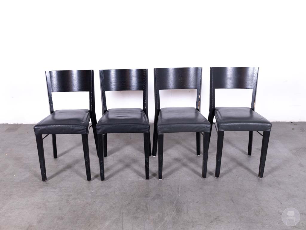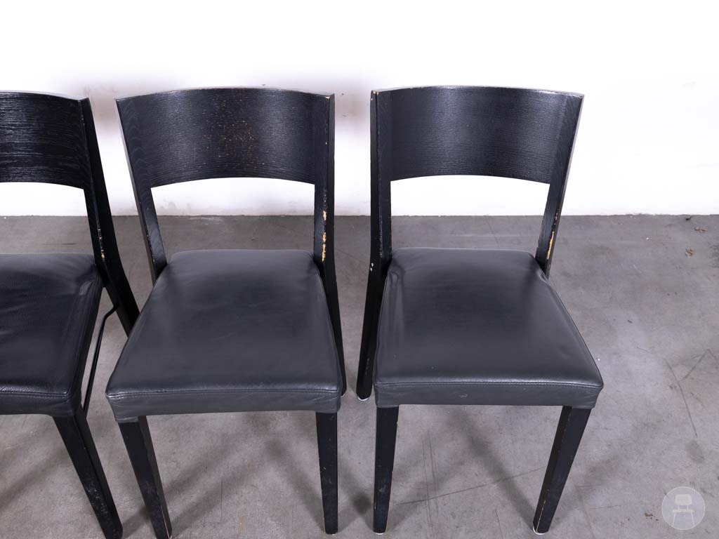 1 set 4 stuks Horecastoel Jasmijn zijn een stoere en praktische keuze voor elk horecaconcept waar comfort en stijl samenkomen. Deze set van vier stoelen is uitgevoerd in een diepzwarte kleur met een donkergrijze skai leren zitting die direct zorgt voor een chique, tijdloze uitstraling. Het stevige houten frame maakt deze stoelen uitermate geschikt voor intensief gebruik in cafés, restaurants of hotels. De subtiele ronding in de rugleuning biedt aangename ondersteuning en maakt langdurig zitten verrassend comfortabel.
