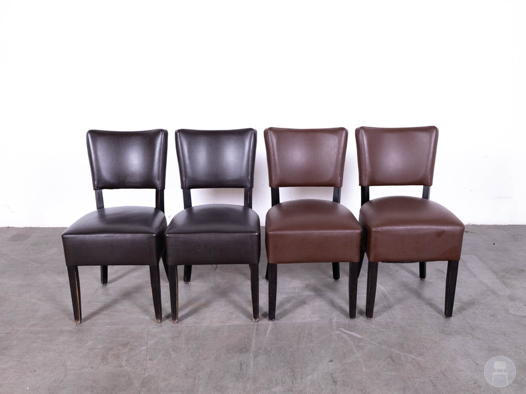 1 set 4 stuks Horecastoel Lisa bruin mix is een ideale keuze voor horecazaken die op zoek zijn naar comfort, stevigheid én een warme uitstraling. Deze stijlvolle stoelen zijn bekleed met onderhoudsvriendelijk skai leer in een mix van bruin- en donkerbruine tinten, wat zorgt voor een speels maar toch chique geheel. Het robuuste houten frame biedt uitstekende stabiliteit, perfect voor dagelijks intensief gebruik in restaurants, cafés of hotelontbijtzalen.