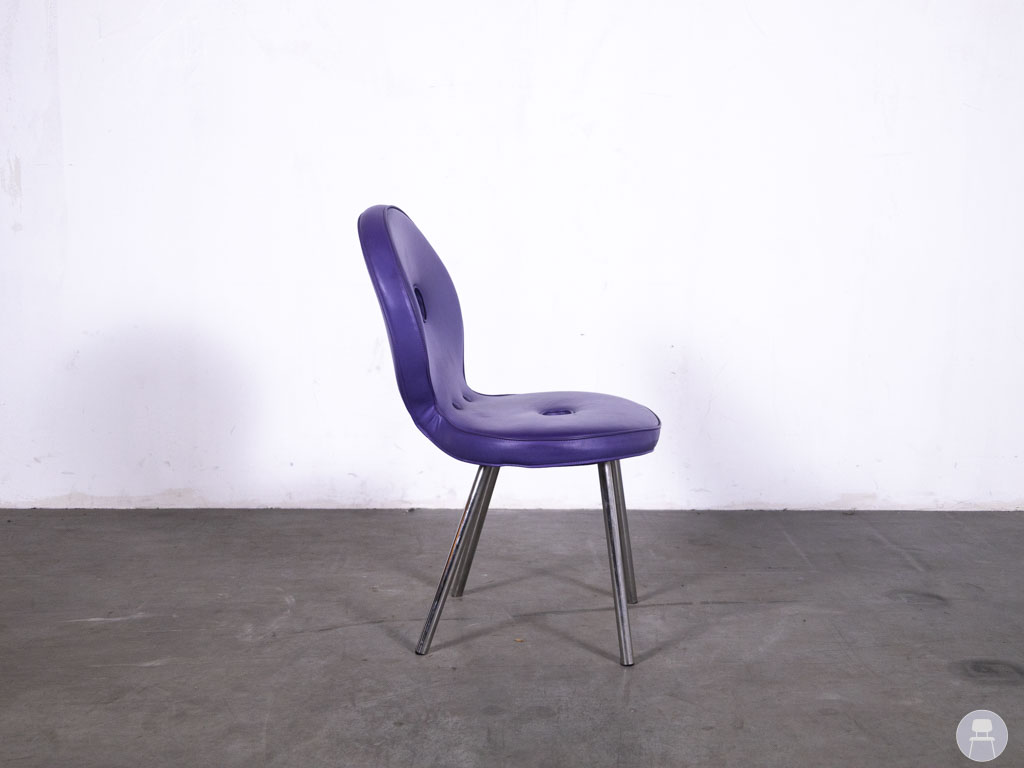 De Horecastoel Abstract Paars is een uitgesproken en speelse stoel die gegarandeerd opvalt in elke ruimte. Het unieke ontwerp, met een ronde rugleuning met een speels kijkgaatje en een diep paarse kleur, maakt deze stoel een ware blikvanger. De kunstlederen bekleding is onderhoudsvriendelijk en bestand tegen intensief gebruik, wat deze stoel bijzonder geschikt maakt voor moderne cafés, bars of evenementenlocaties. Het verchroomde metalen onderstel zorgt voor stabiliteit en een eigentijdse look. Kies voor creativiteit en kleur met deze bijzondere design horecastoel.