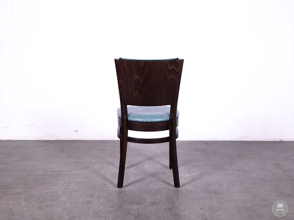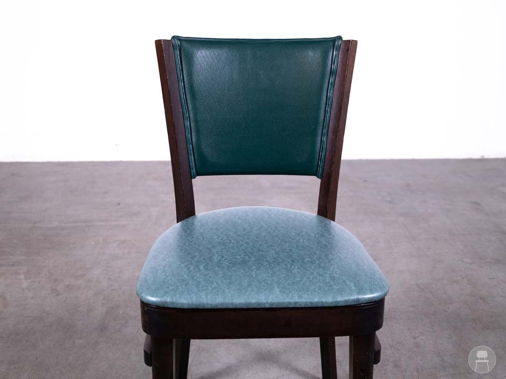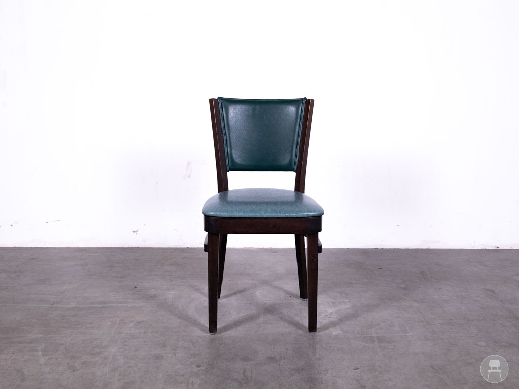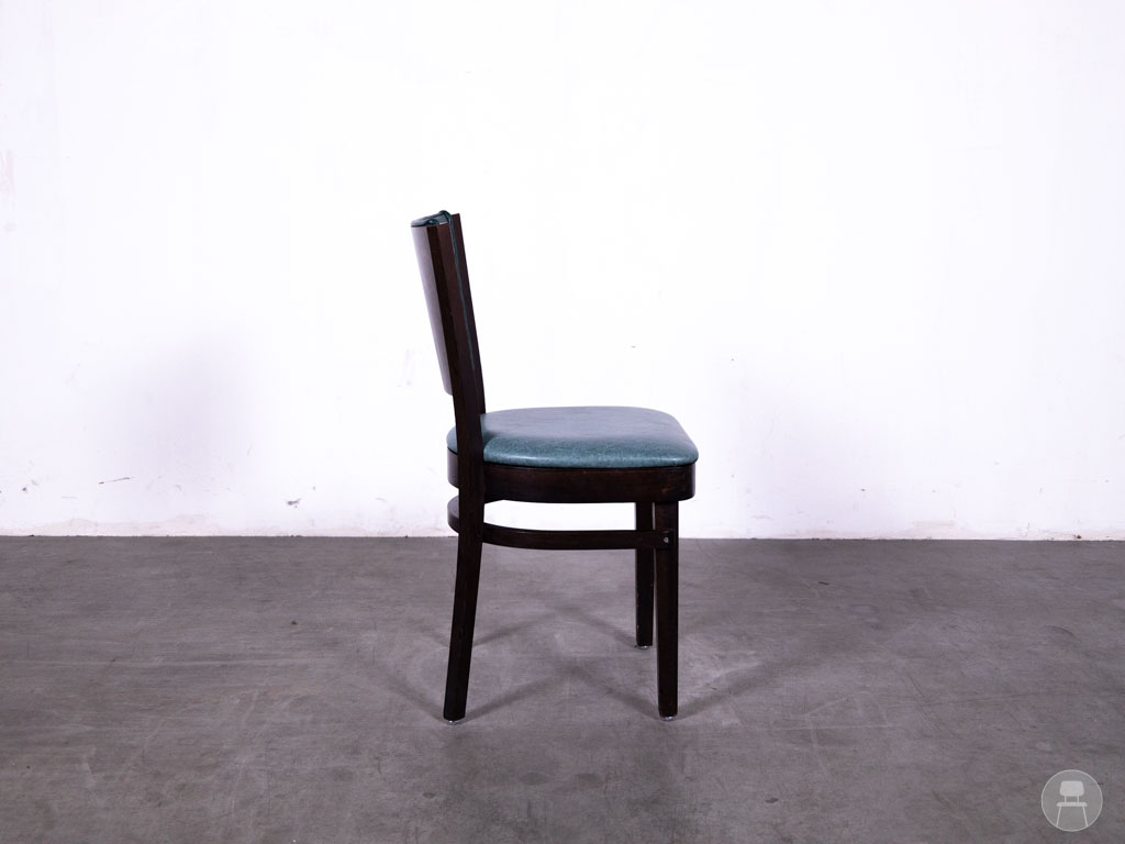 Horecastoel Fien zeegroen is een sfeervolle en stevige horecastoel met een authentieke uitstraling – precies wat je mag verwachten van een typisch Euroseat product. Het donkerbruine beukenhouten frame biedt een solide basis en sluit perfect aan bij het klassieke design. De rugleuning is bekleed met skai leer in een diepe zeegroene tint, terwijl de zitting door ons professioneel opnieuw is gestoffeerd in bijpassend zeegroen. Het resultaat is een comfortabele stoel die er weer als nieuw uitziet en direct inzetbaar is in elke horecazaak.