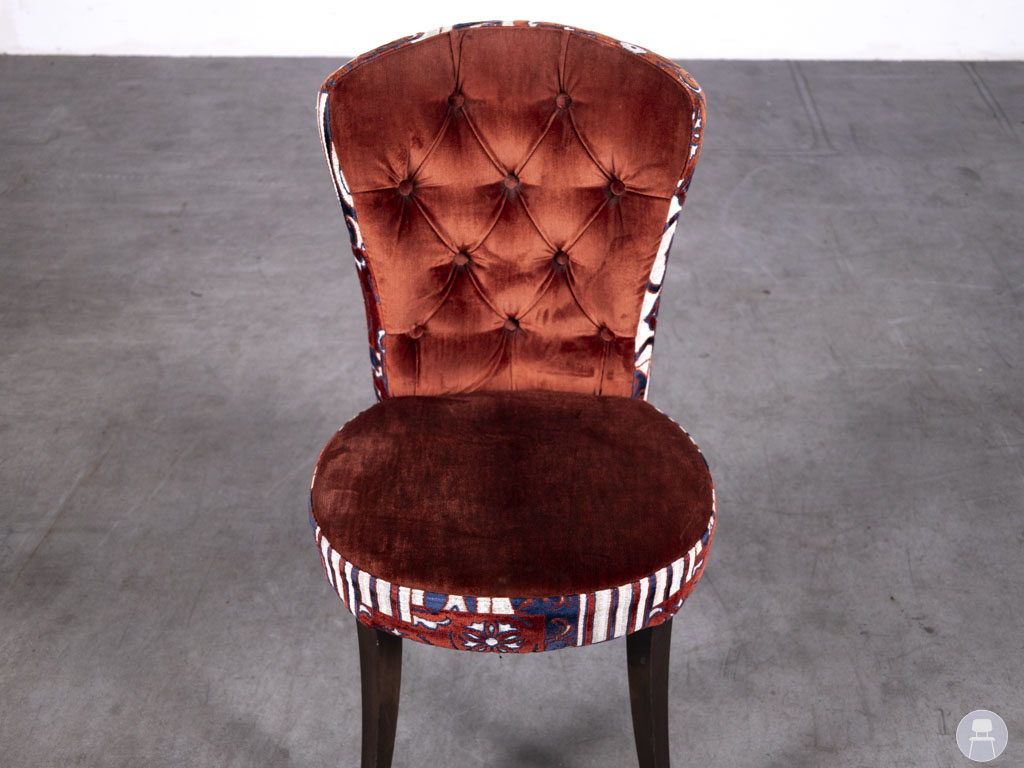 Horecastoel Juliana velvet rood Montbel is een absolute eyecatcher met een uitgesproken, luxueuze uitstraling. Deze stoel van Montbel ademt klasse en comfort, met zijn elegante knoopdetails, rijke fluwelen bekleding en prachtige mix van warme kleuren en patronen. Perfect voor restaurants, hotels of chique cafés die nét dat beetje extra willen uitstralen. Dankzij de stevige houten poten en de zachte, ondersteunende zitting is de horecastoel niet alleen mooi, maar ook heerlijk om op te zitten. Sommige exemplaren vertonen lichte gebruikssporen op de stof, maar dat doet niets af aan de charme en het karakter. Een geweldige kans om stijlvol én voordelig je horecazaak een opvallende boost te geven!
