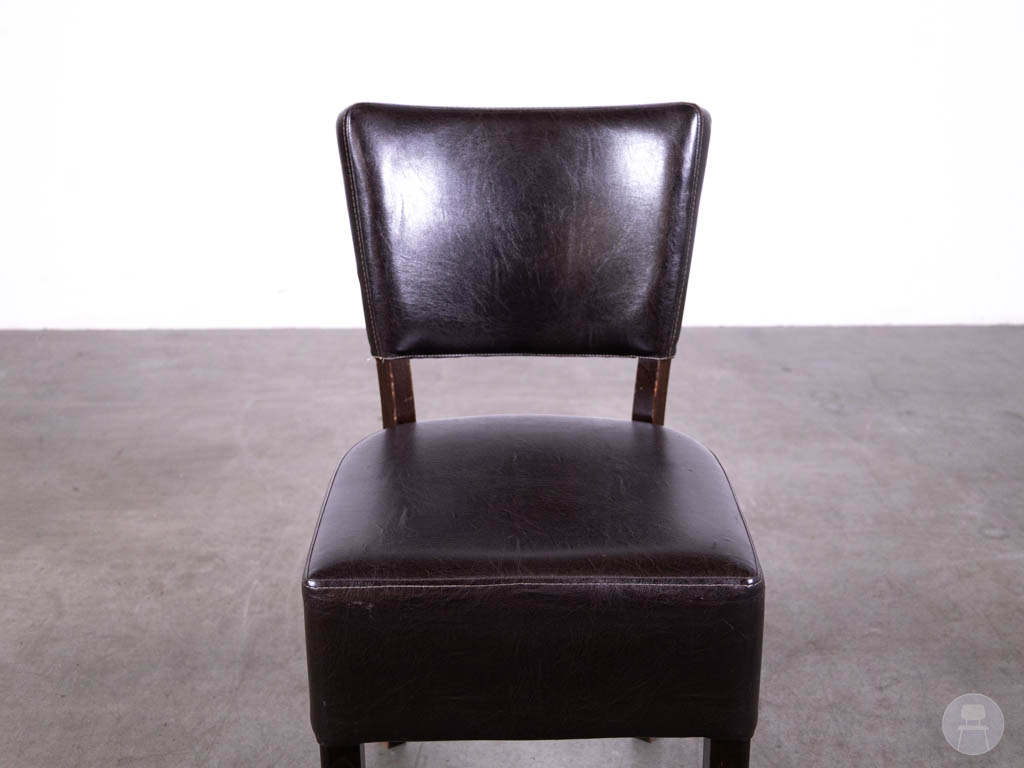 Horecastoel Lisa Daisy donkerbruin straalt klassieke elegantie uit met een moderne twist. Deze stoel is bekleed met donkerbruin kunstleer en biedt een comfortabele zit dankzij de goed gevulde zitting en licht gebogen rugleuning.