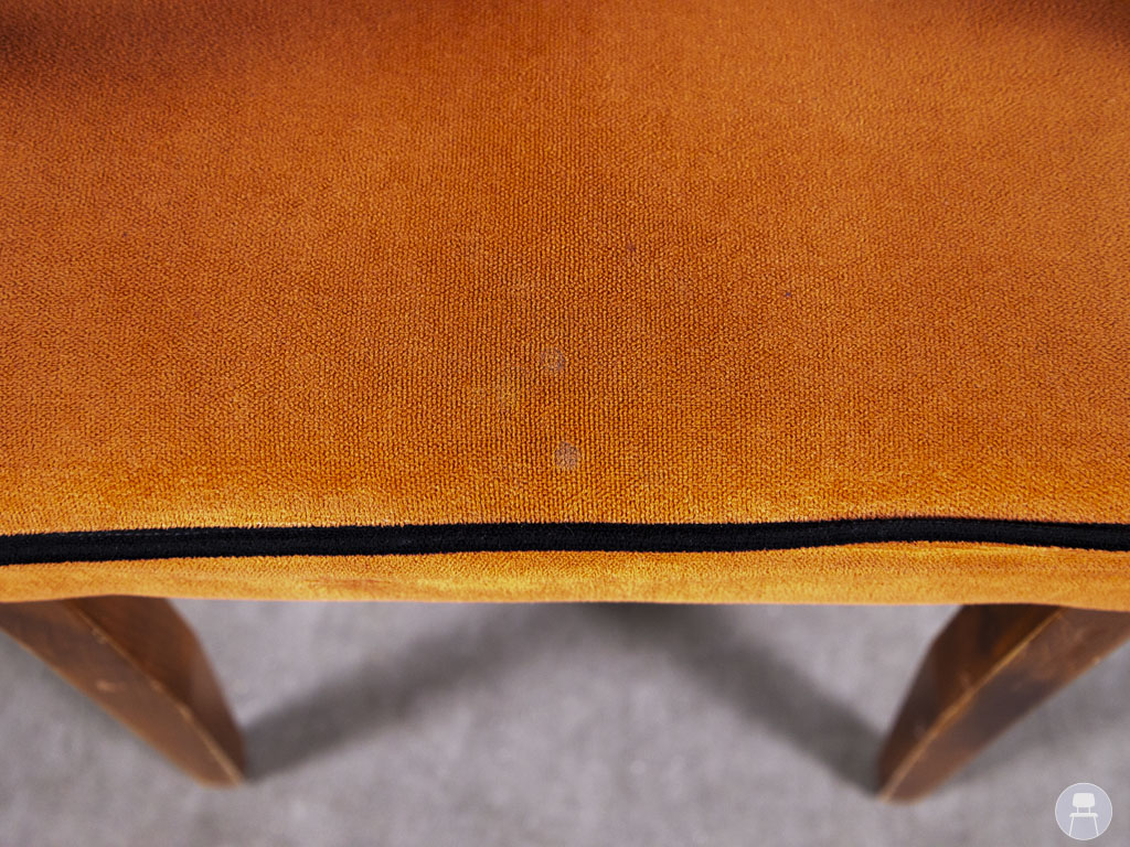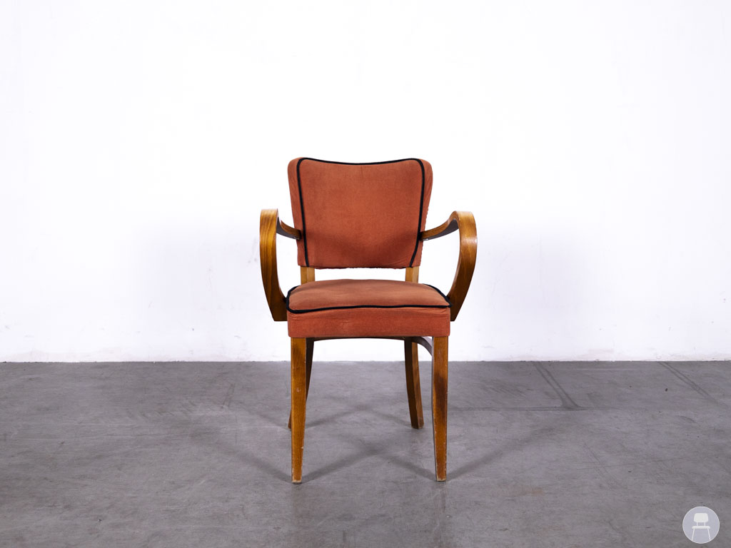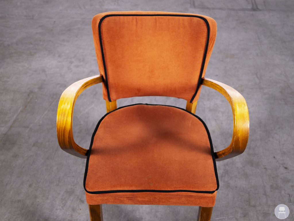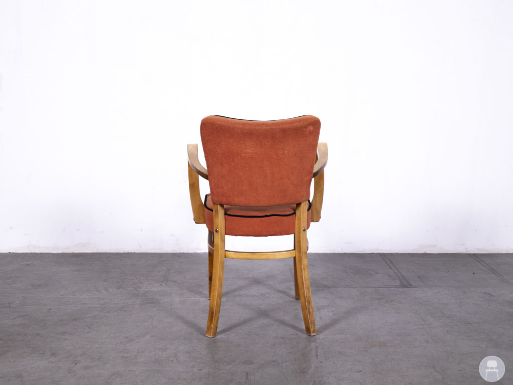 Horecastoel Lisa Jessie ma oranje is een karaktervolle horecastoel met een elegante retro-uitstraling. De combinatie van het warme oranje textiel en het klassiek gebogen houten frame geeft deze stoel een unieke, gastvrije uitstraling. Perfect voor een sfeervol restaurant, café of retro-interieur. De stoel is voorzien van comfortabele armleuningen en een zachte zitting. De stof vertoont lichte gebruikssporen, wat juist bijdraagt aan de authentieke vintage look van dit meubelstuk.