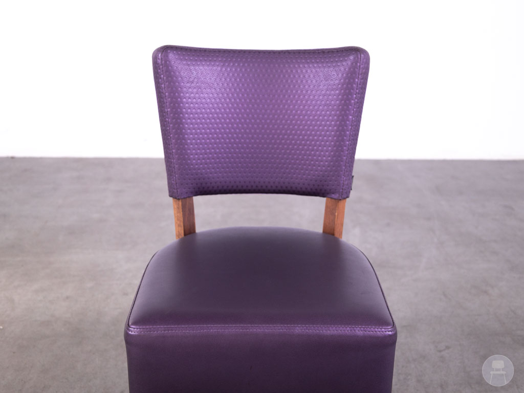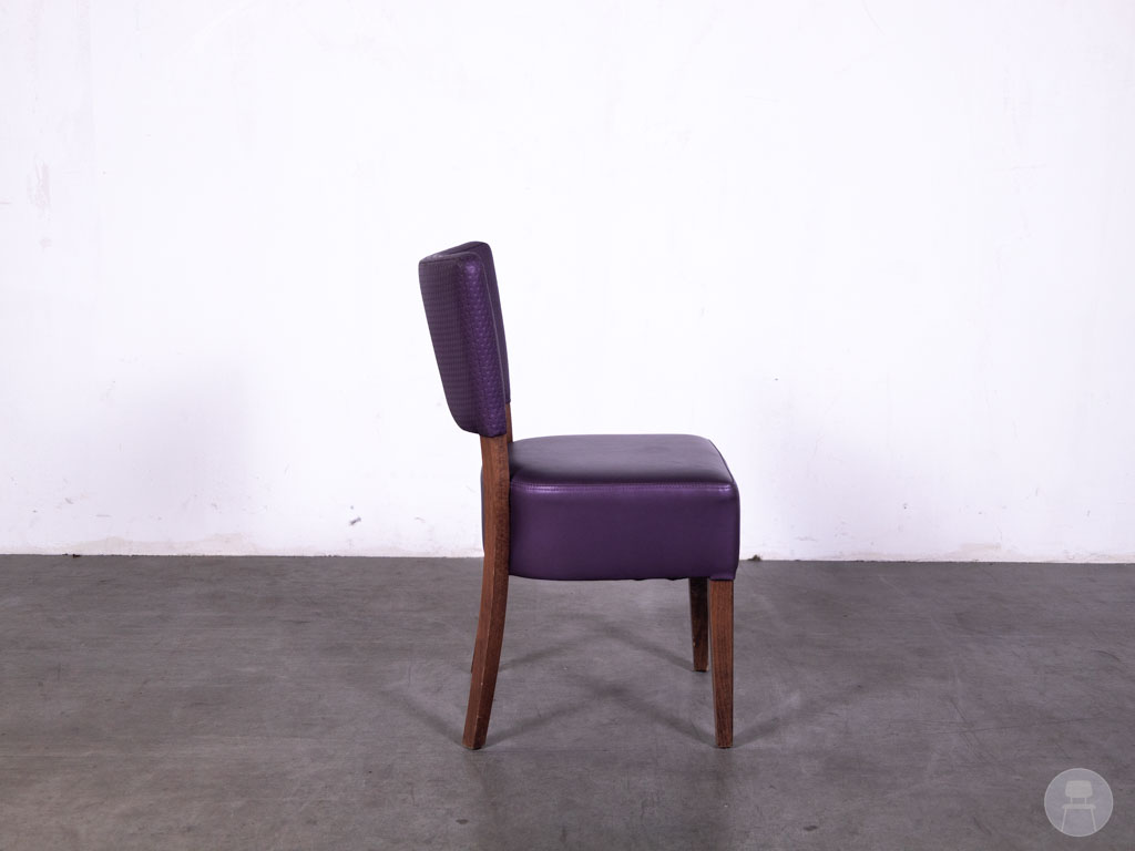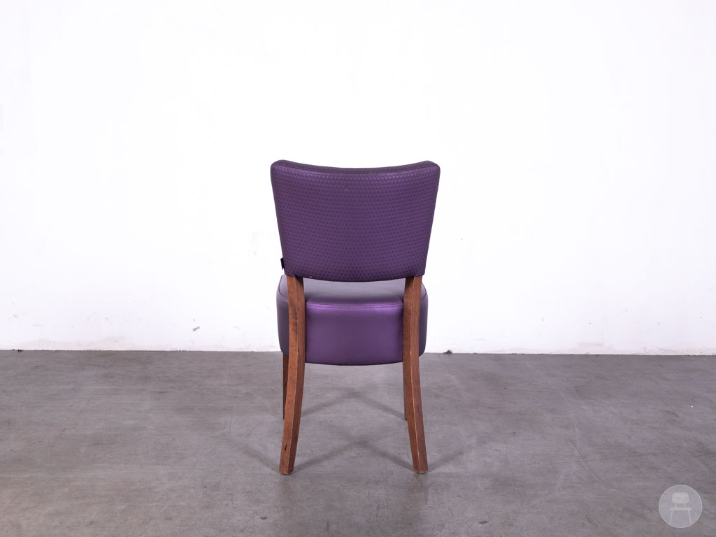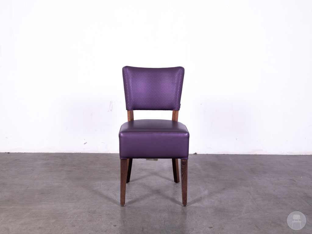 Horecastoel Lisa Margot za paars Vervoort is een uitgesproken stijlvolle keuze voor horecazaken die durven te verrassen met kleur én klasse. Deze armloze stoel combineert een strak beukenhouten frame met een paarse skai lederen bekleding die luxe en karakter uitstraalt. Dankzij de diepe, rijke kleur en subtiele glans vormt de stoel een echte blikvanger in elk restaurant, café of hotel.