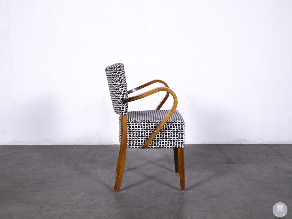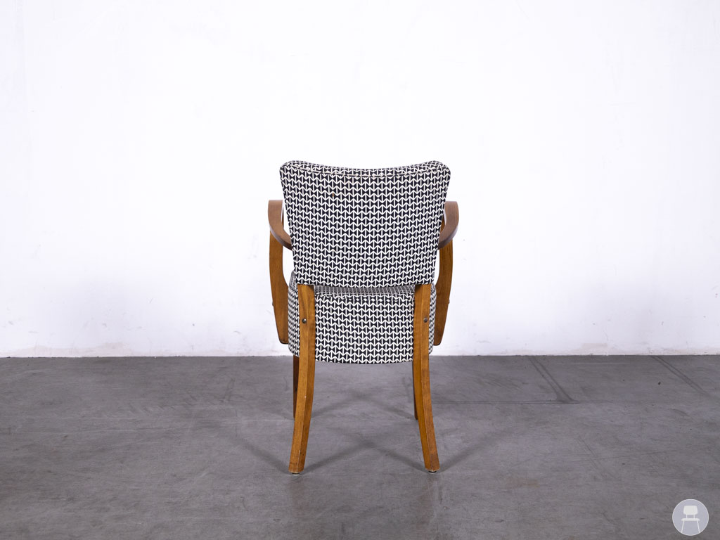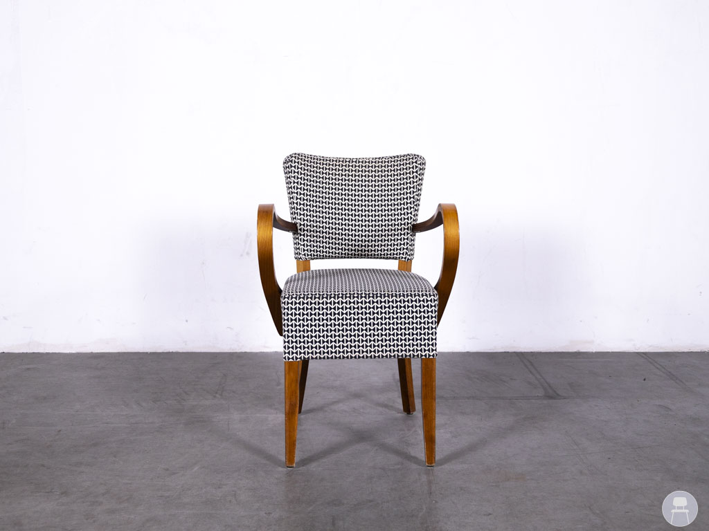 Horecastoel Lisa Strik ma zwart-wit is een opvallende horecastoel met een elegant silhouet en een speels zwart-wit patroon. De klassieke, gebogen houten armleuningen geven de stoel een warme, retro-uitstraling, terwijl de grafische bekleding zorgt voor een frisse, eigentijdse twist. Met haar comfortabele zitting, stevige constructie en karaktervolle look is deze stoel uitermate geschikt voor gebruik in horeca of bijzondere interieurs. Een unieke mix van vintage charme en moderne flair,  perfect voor wie net dat beetje extra zoekt.